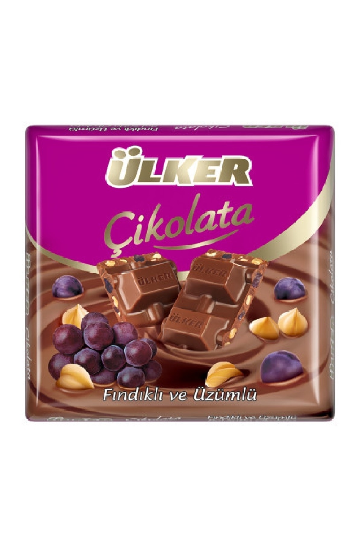 Üzümlü Fındıklı Sütlü Kare Çikolata - 60 gram - 36 Adet Üzümlü Fındıklı Sütlü Kare Çikolata - 60 gram - 36 Adet K01450-07 تک سایز