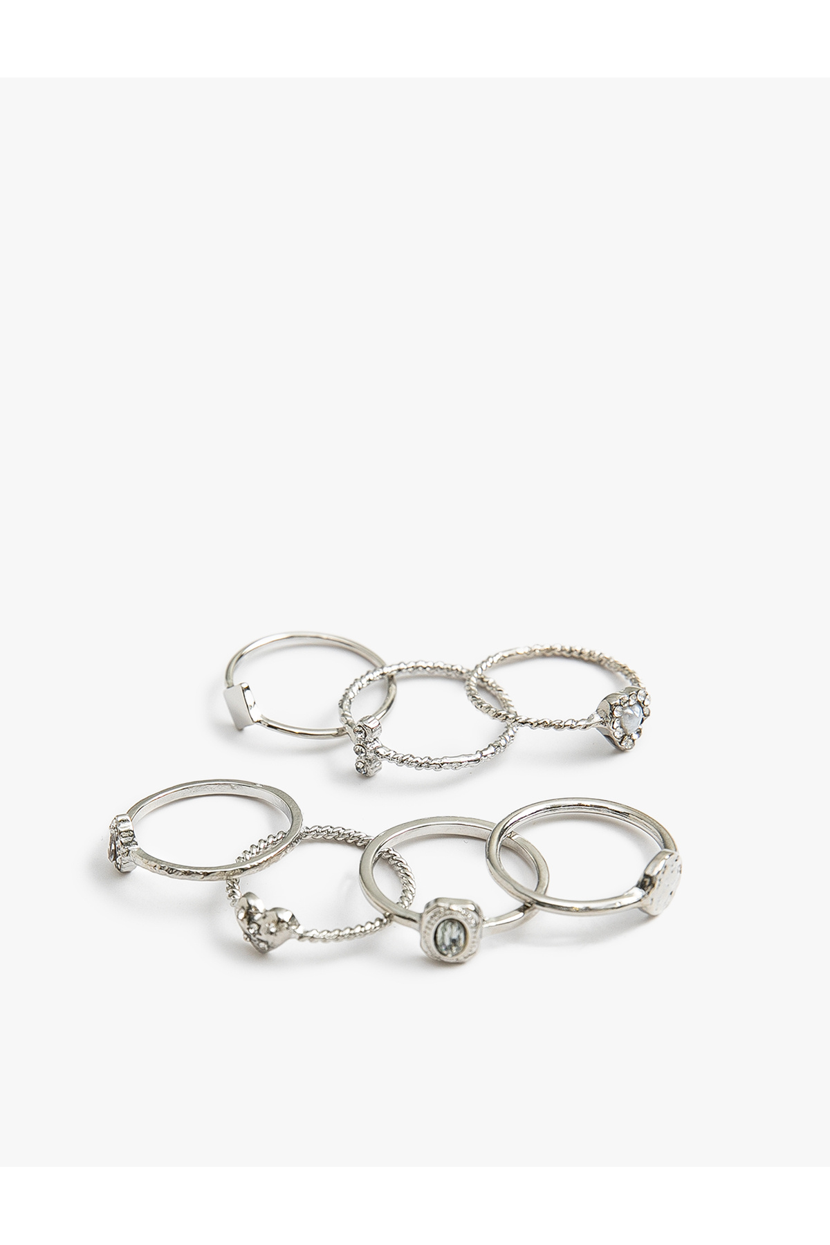 Vintage Yüzük 7'li Kalp Figürlü Parlak Taş Detaylı Vintage Yüzük 7'li Kalp Figürlü Parlak Taş Detaylı 3SAK70170AA L