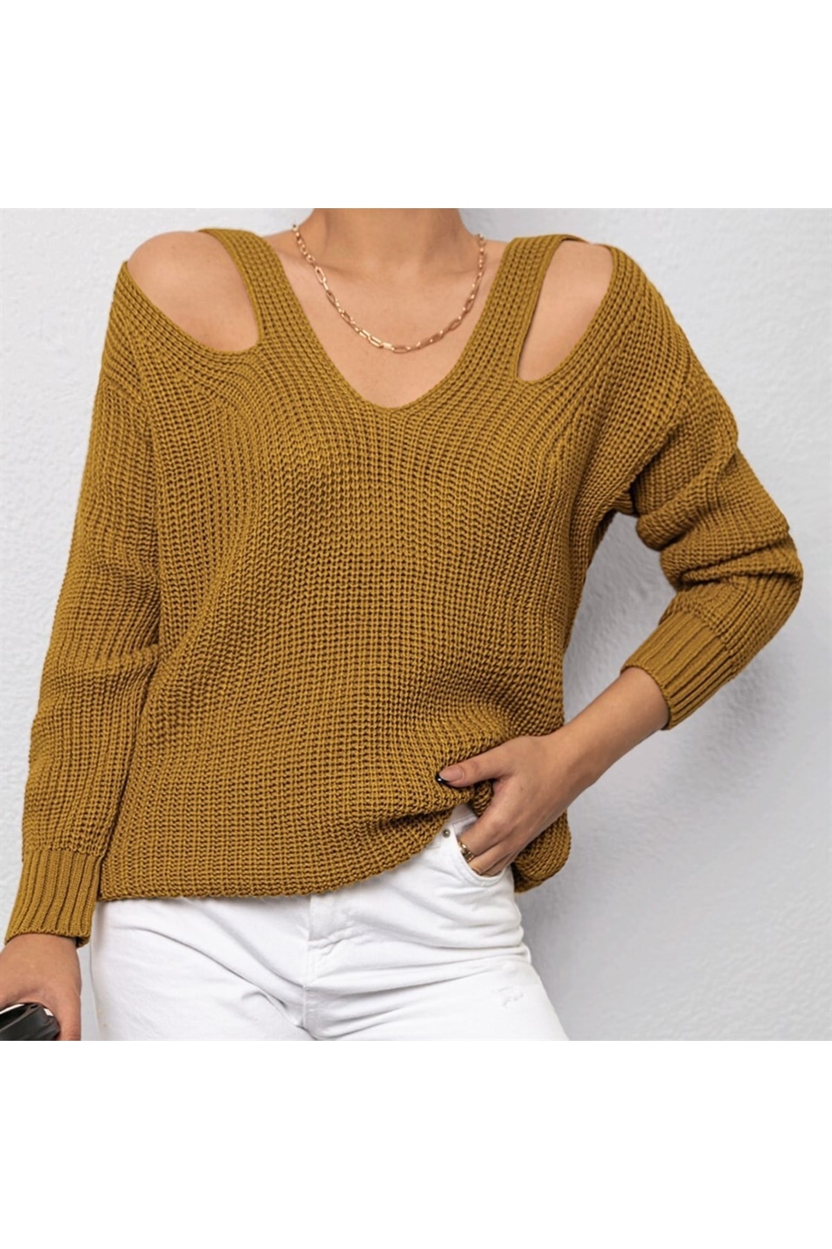 V Yaka Askılı Omuz Dekolteli Selanik Örgü Pudra Renk Triko Tunik Kazak V Yaka Askılı Omuz Dekolteli Selanik Örgü Pudra Renk Triko Tunik Kazak 22156 2XL