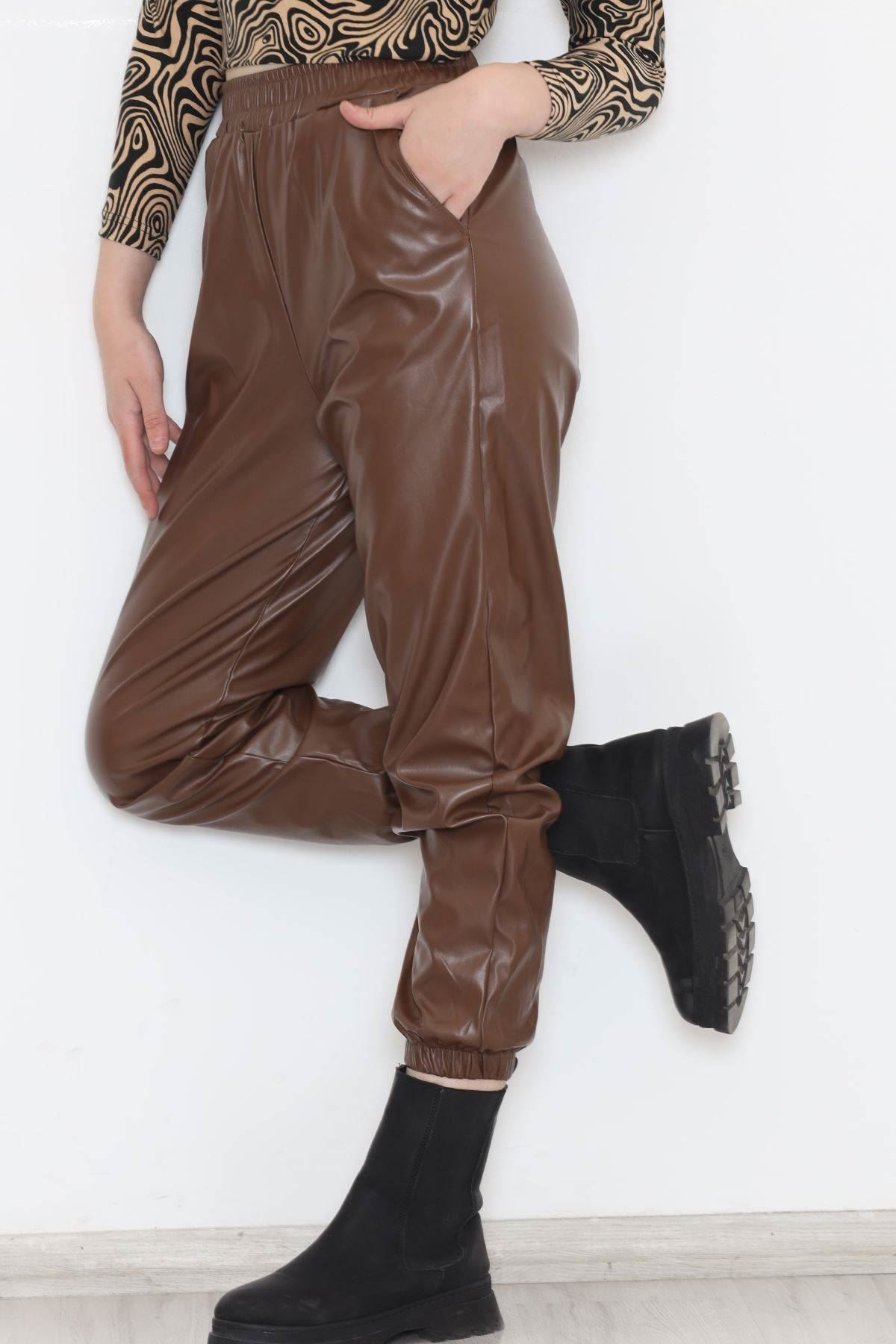 Kahve Kemer Detaylı Suni Deri Jogging Pantolon Kahve Kemer Detaylı Suni Deri Jogging Pantolon 28790 L