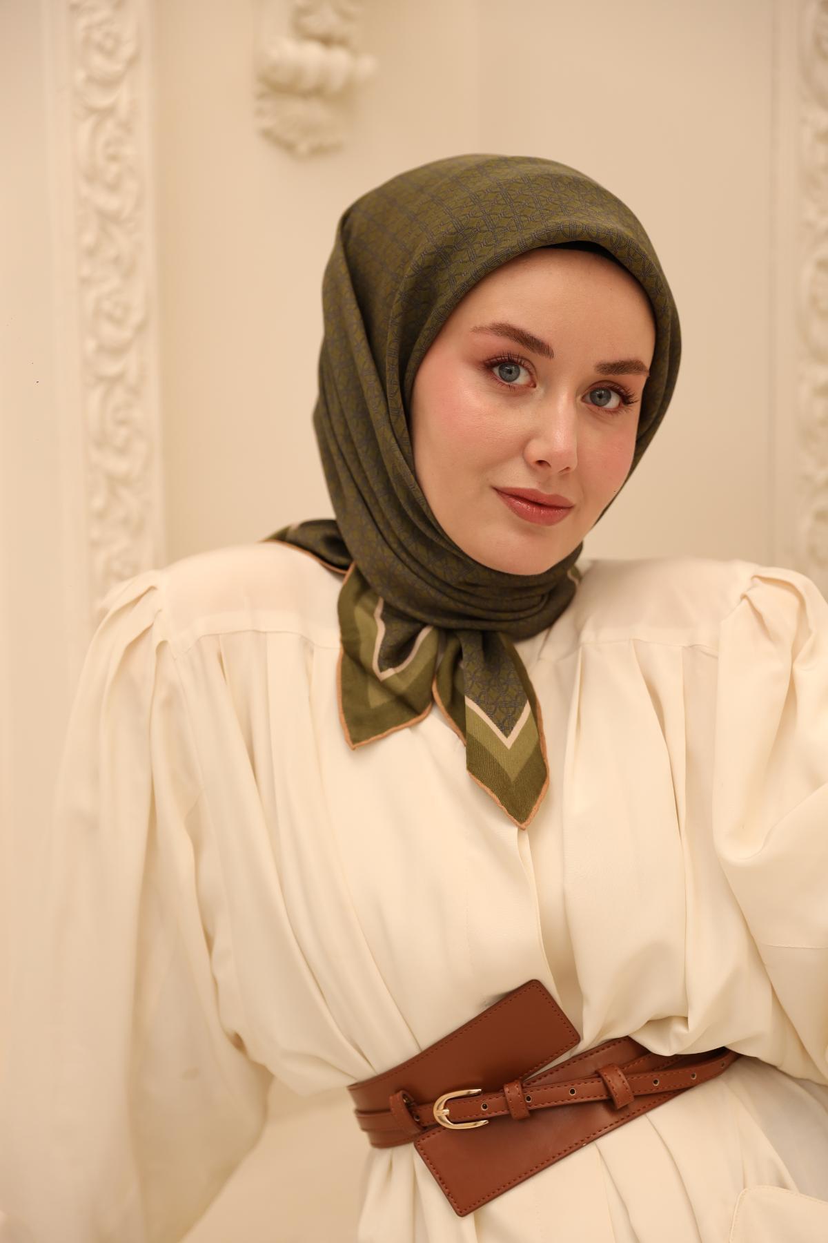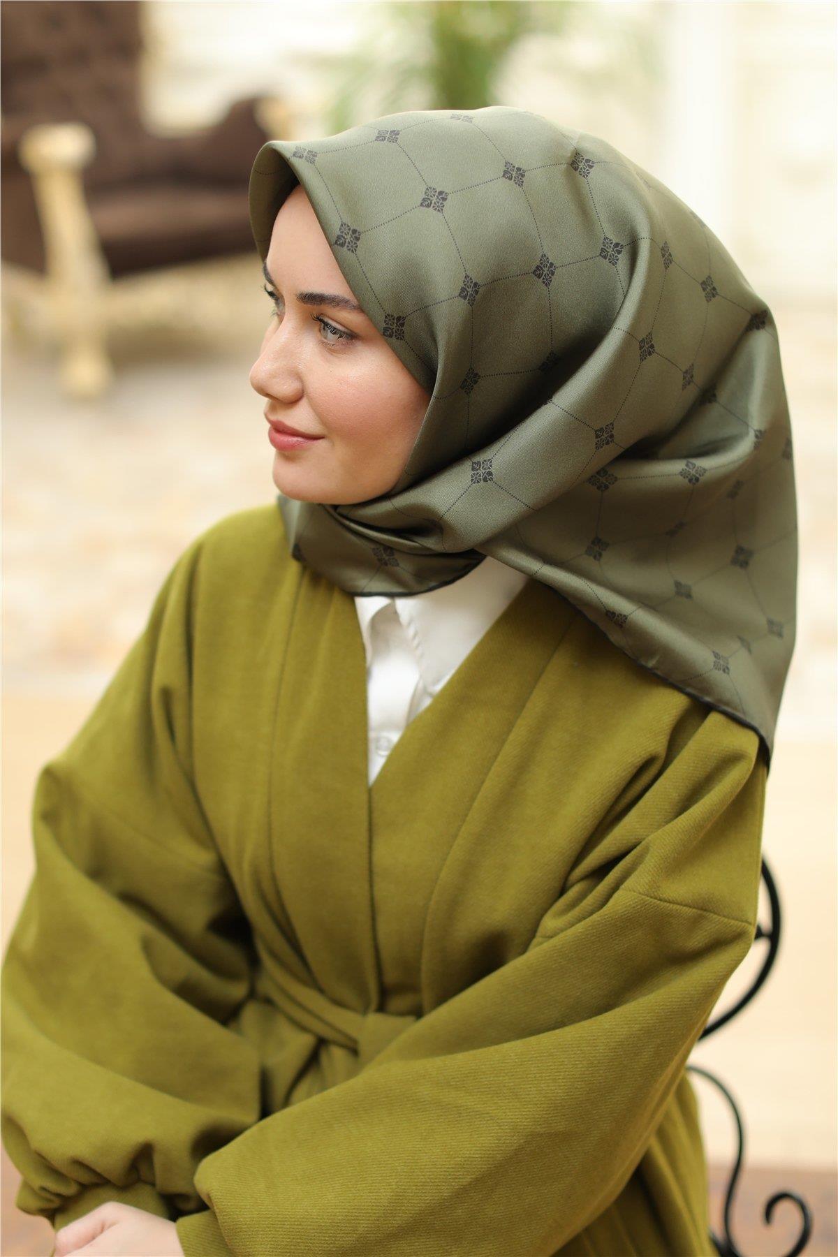 Twill İpek Eşarp - 11392-27 Haki Yeşil Twill İpek Eşarp - 11392-27 Haki Yeşil 90x90
