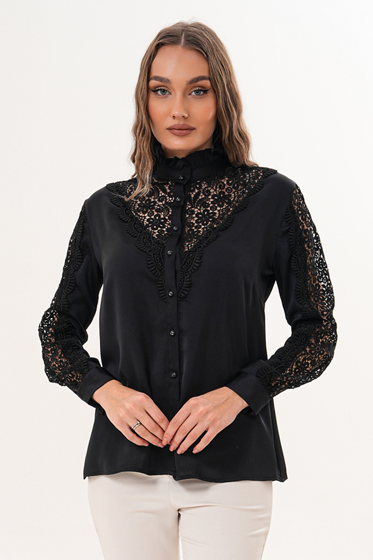 Büyük Beden Antik Desen Güpür Dantelli Krep Gömlek Büyük Beden Antik Desen Güpür Dantelli Krep Gömlek G0014 56