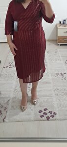 Kadın Büyük Beden Bordo Kol Ve Ön Pul Payet Garnili Midi Boy Elbise Kadın Büyük Beden Bordo Kol Ve Ön Pul Payet Garnili Midi Boy Elbise 132 50