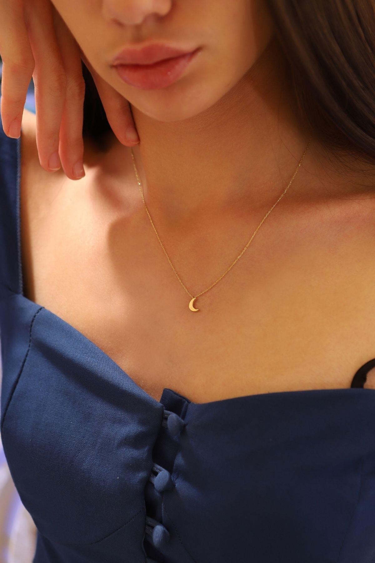 Kadın Altın Kaplama Mineli Hilal Kolye Kadın Altın Kaplama Mineli Hilal Kolye ALXS9560 تک سایز