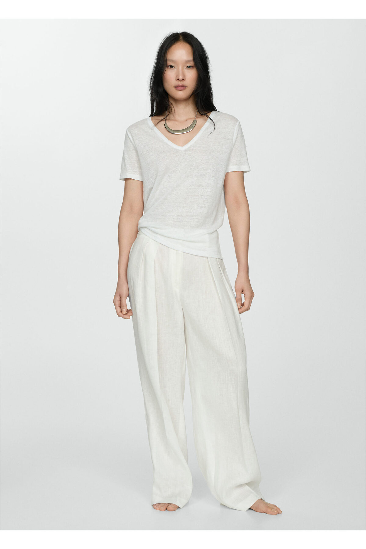 V Yakalı Keten Tişört V Yakalı Keten Tişört 47046303 58