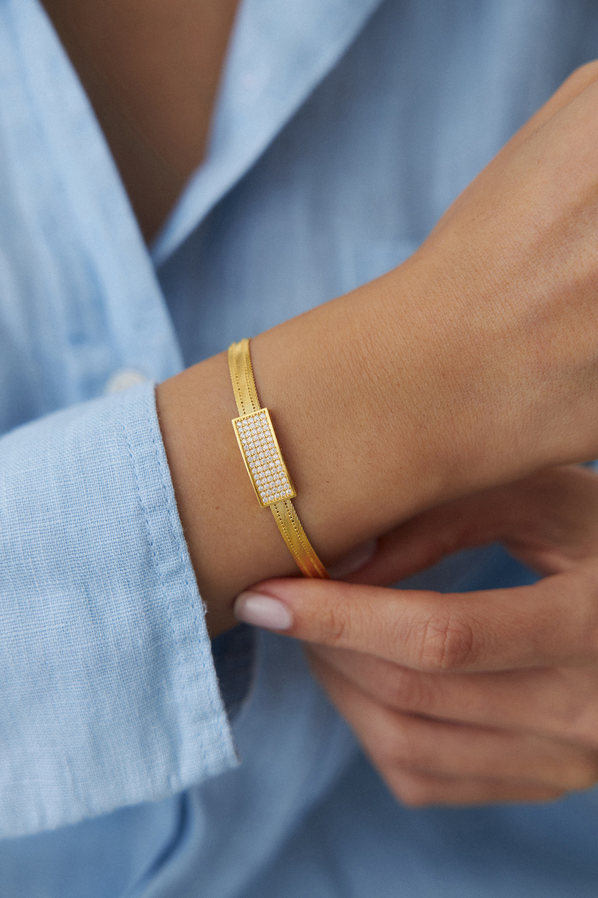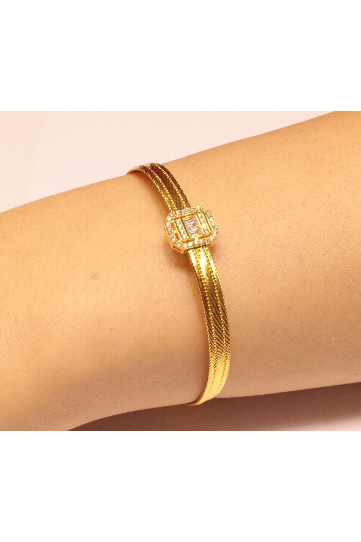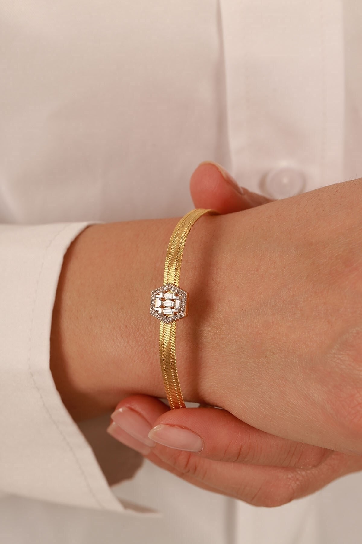 14 Ayar Altın Trabzon Hasır Kare Taşlı Baget Bileklik 14 Ayar Altın Trabzon Hasır Kare Taşlı Baget Bileklik YKKLY00000663 19 cm