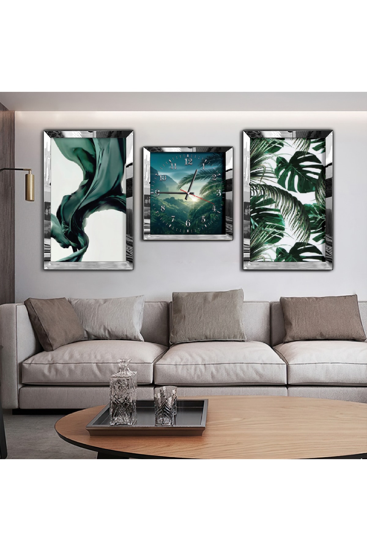 Yeşil Çiçek Soyut Desen Gümüş Pleksi Kenar Üçlü Mdf Tablo Seti Ve Saat Seti Yeşil Çiçek Soyut Desen Gümüş Pleksi Kenar Üçlü Mdf Tablo Seti Ve Saat Seti 3MPTMP382 40 x 60