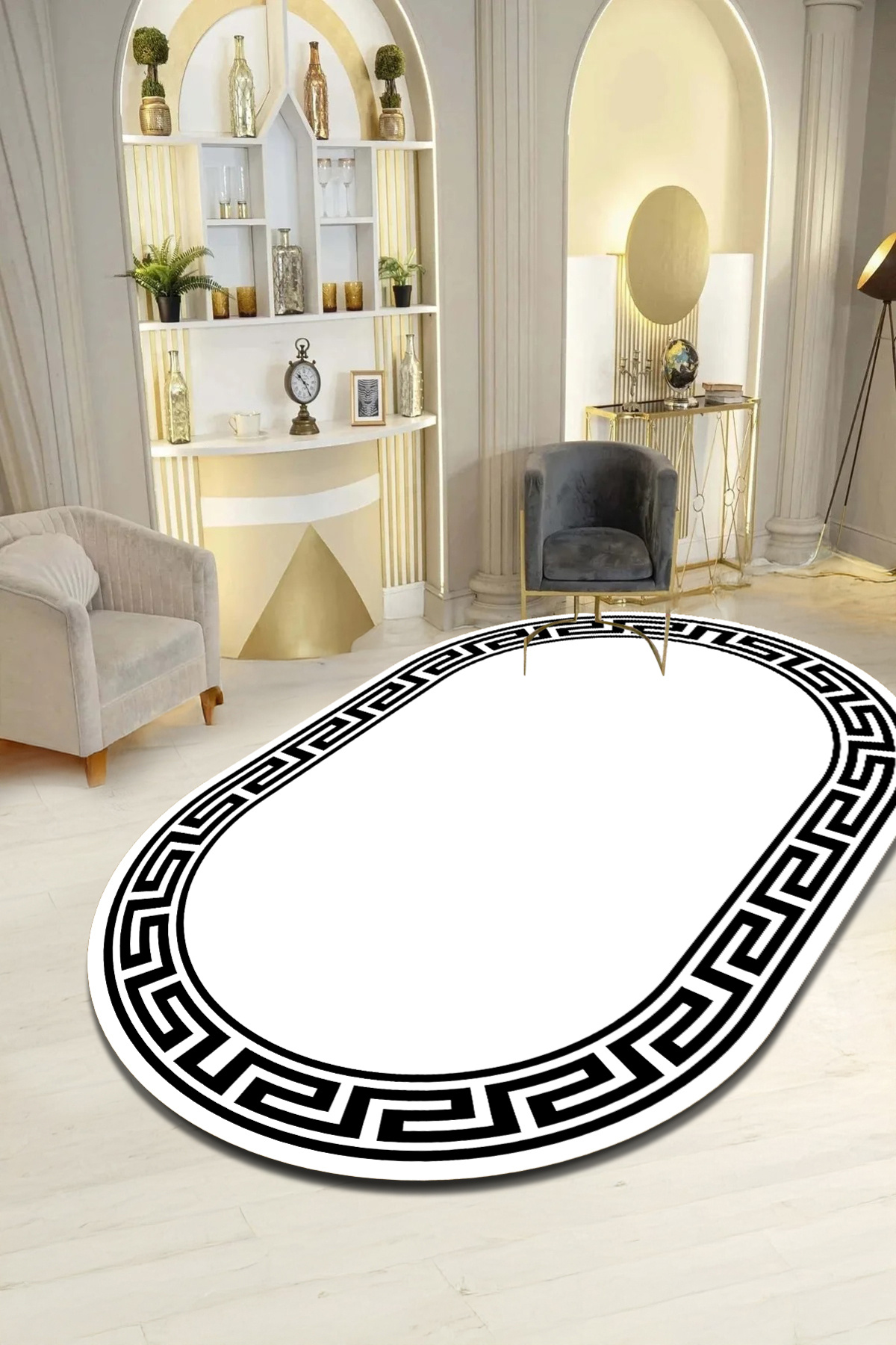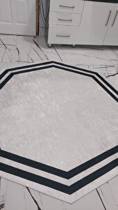 Beyaz-Siyah Sekizgen Yuvarlak Halı (Makinada Yıkanabilir Kaymaz Dot Taban) - CP561 Beyaz-Siyah Sekizgen Yuvarlak Halı (Makinada Yıkanabilir Kaymaz Dot Taban) - CP561 esta0222 180 x 180