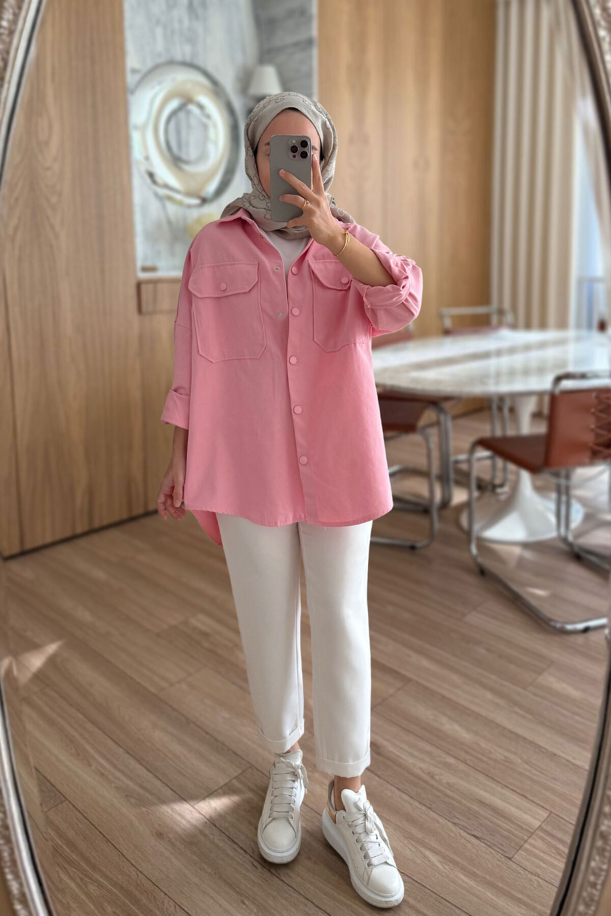 Soft Tesettür Gömlek - Pembe Soft Tesettür Gömlek - Pembe KH-1463 Standart