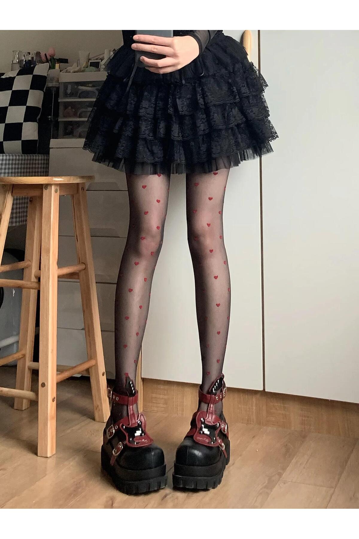 Kadın Siyah Red Heart Kalpli Desenli Külotlu Çorap Kadın Siyah Red Heart Kalpli Desenli Külotlu Çorap 5004053 L/XL