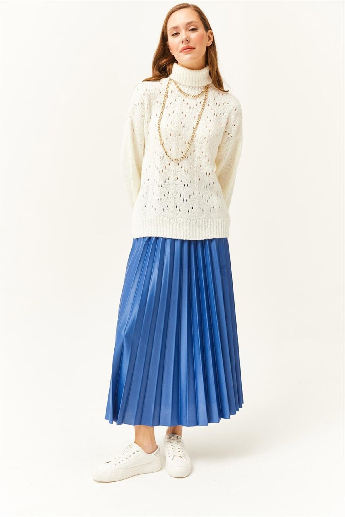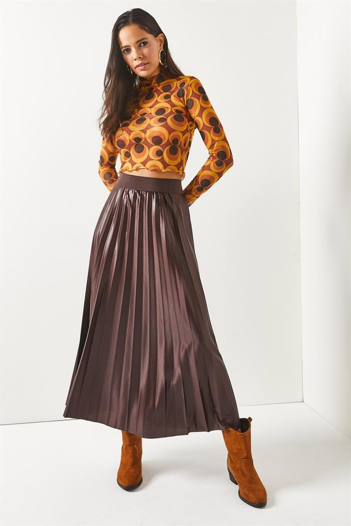 Siyah Deri Görünümlü Pilise Çan Etek ETK-19000233 Siyah Deri Görünümlü Pilise Çan Etek ETK-19000233 L/XL