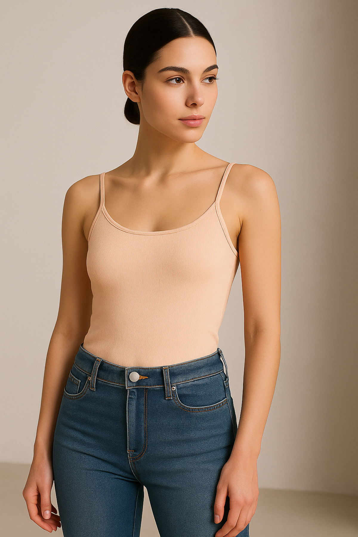 Pamuklu Ince Askılı Fitilli Kadın Atlet | Şeftali Pamuklu Ince Askılı Fitilli Kadın Atlet | Şeftali BD6840 2XL
