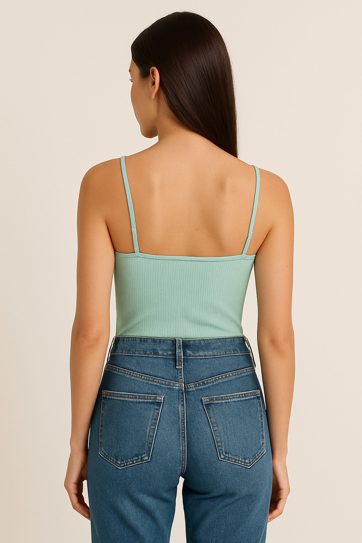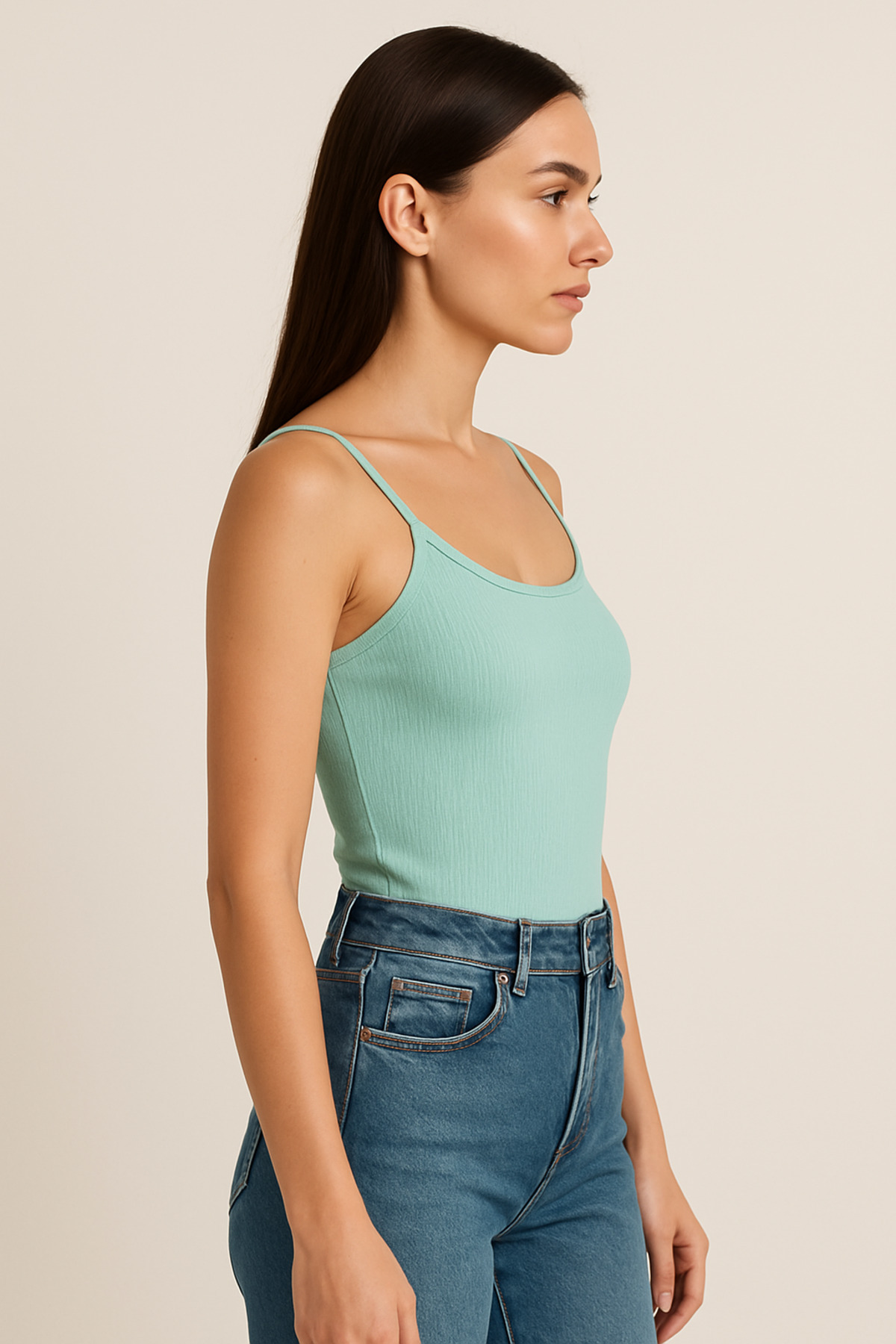 Pamuklu Ince Askılı Fitilli Kadın Atlet | Yeşil Pamuklu Ince Askılı Fitilli Kadın Atlet | Yeşil BD6840 2XL
