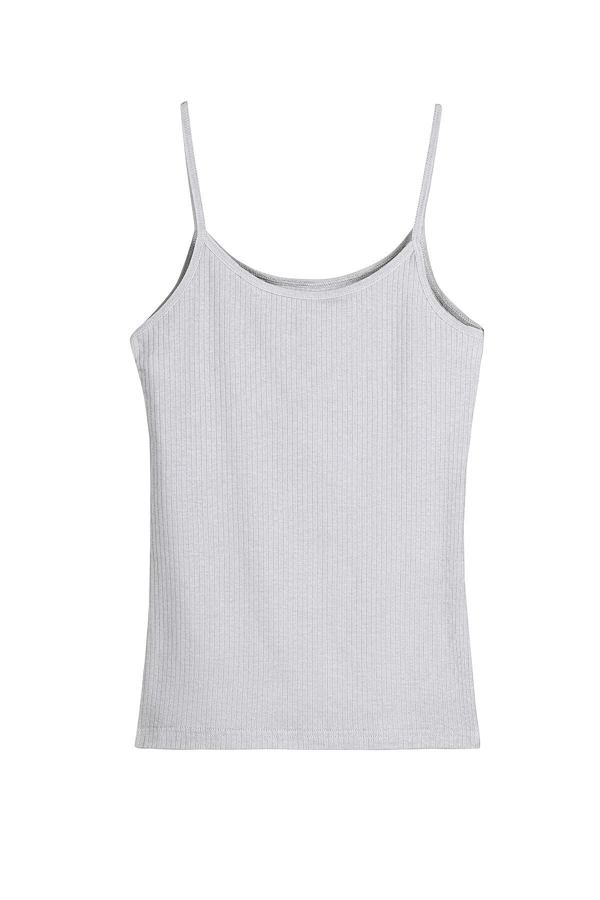 Pamuklu Ince Askılı Fitilli Kadın Atlet | Karipmelanj Gri Pamuklu Ince Askılı Fitilli Kadın Atlet | Karipmelanj Gri BD6840 2XL