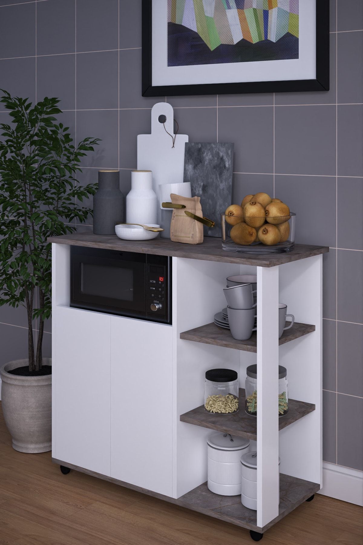Bozlale Tekerlekli Çok Amaçlı Kahve Köşesi & Mikrodalga Dolabı | Modern Mutfak Dolabı Bozlale Tekerlekli Çok Amaçlı Kahve Köşesi & Mikrodalga Dolabı | Modern Mutfak Dolabı MakromikroF تک سایز