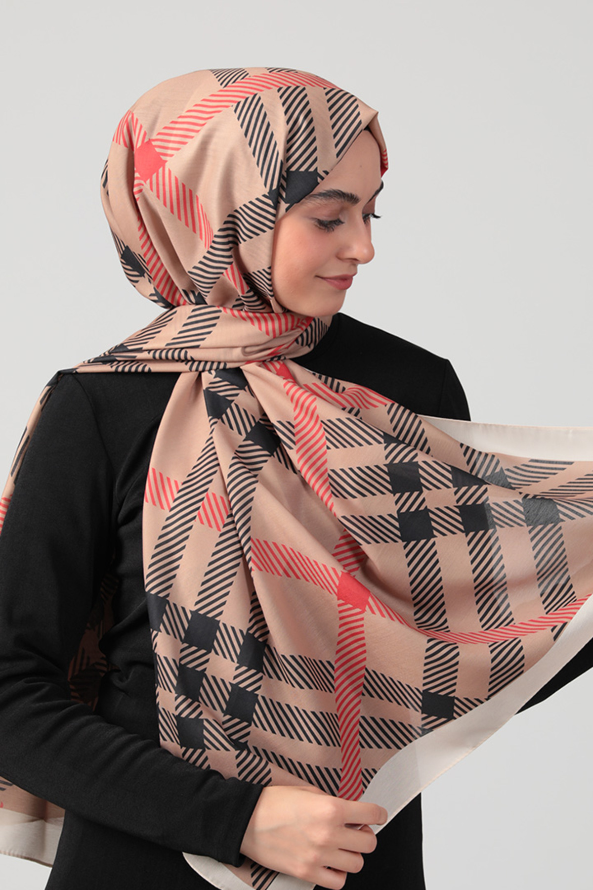Pamuk Ipek Şal - Ekose Desen - Camel Pamuk Ipek Şal - Ekose Desen - Camel T611 70 x 200