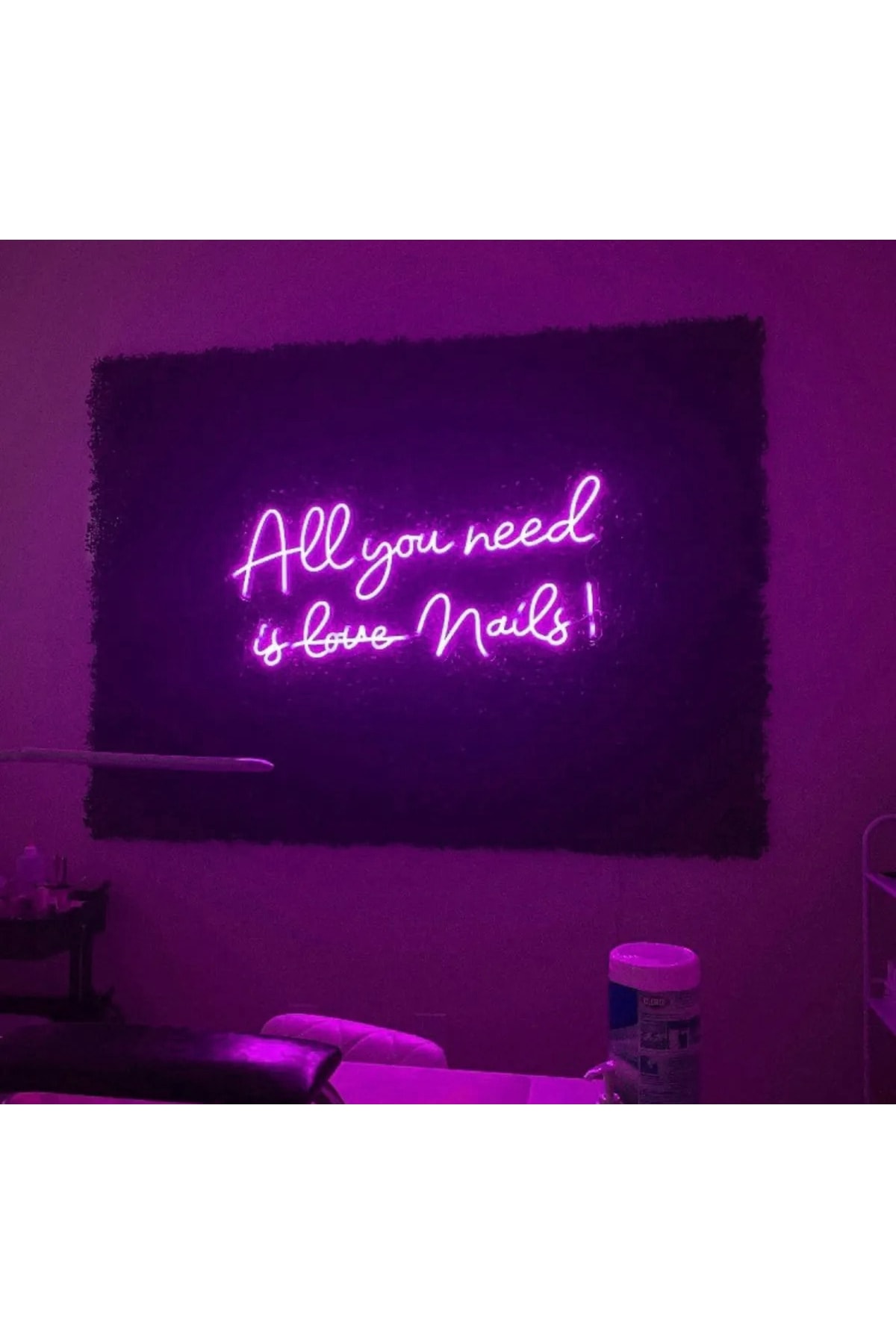 All You Need Is Love Nails Tırnak Manikür Pedikür Güzellik Merkezi Kuaför Neon Led Tabela(60x35cm) allneed