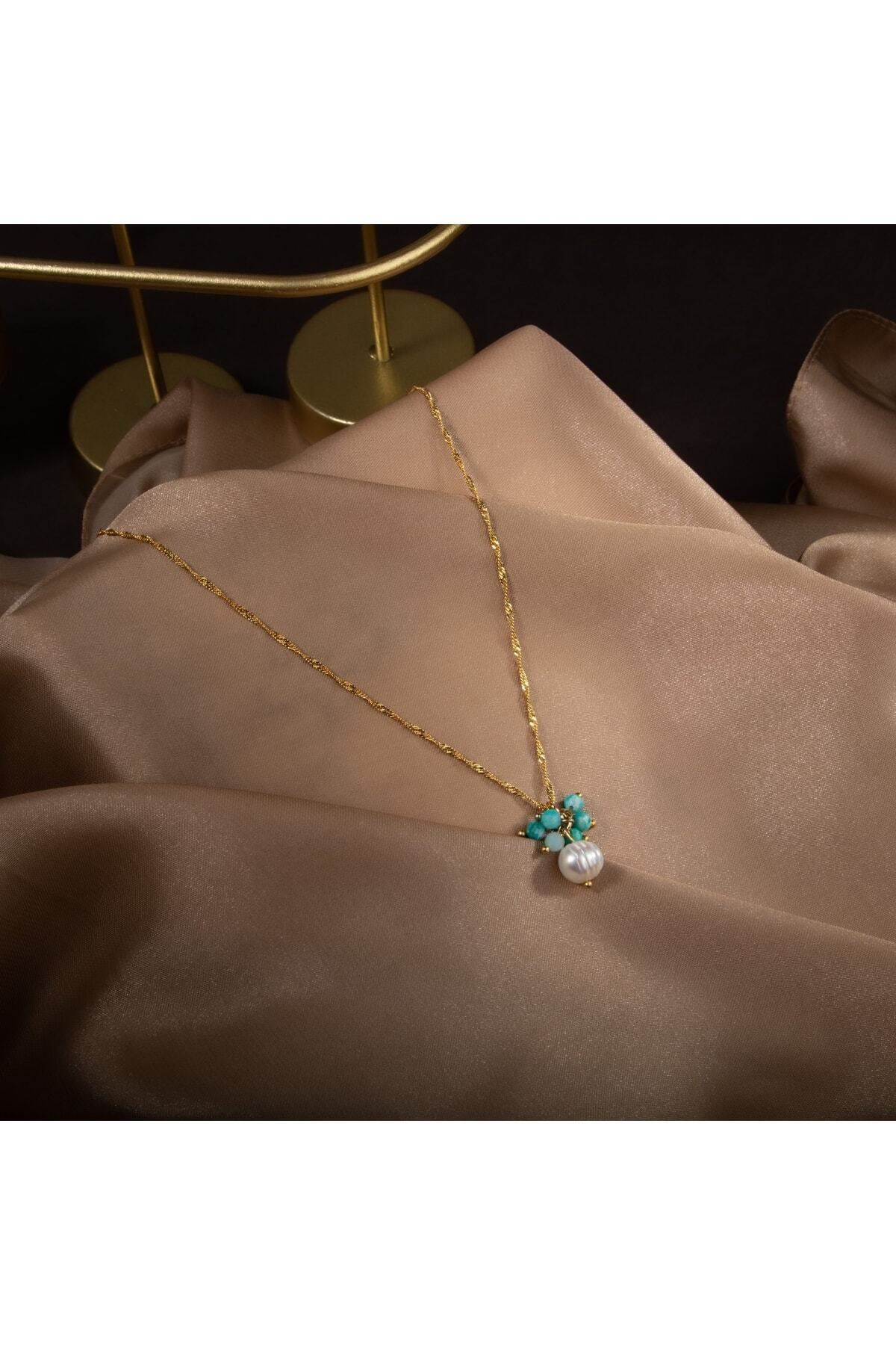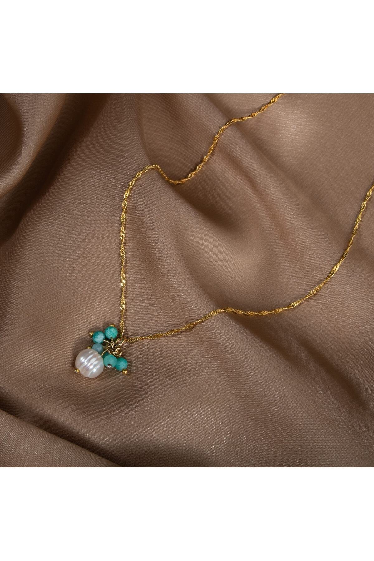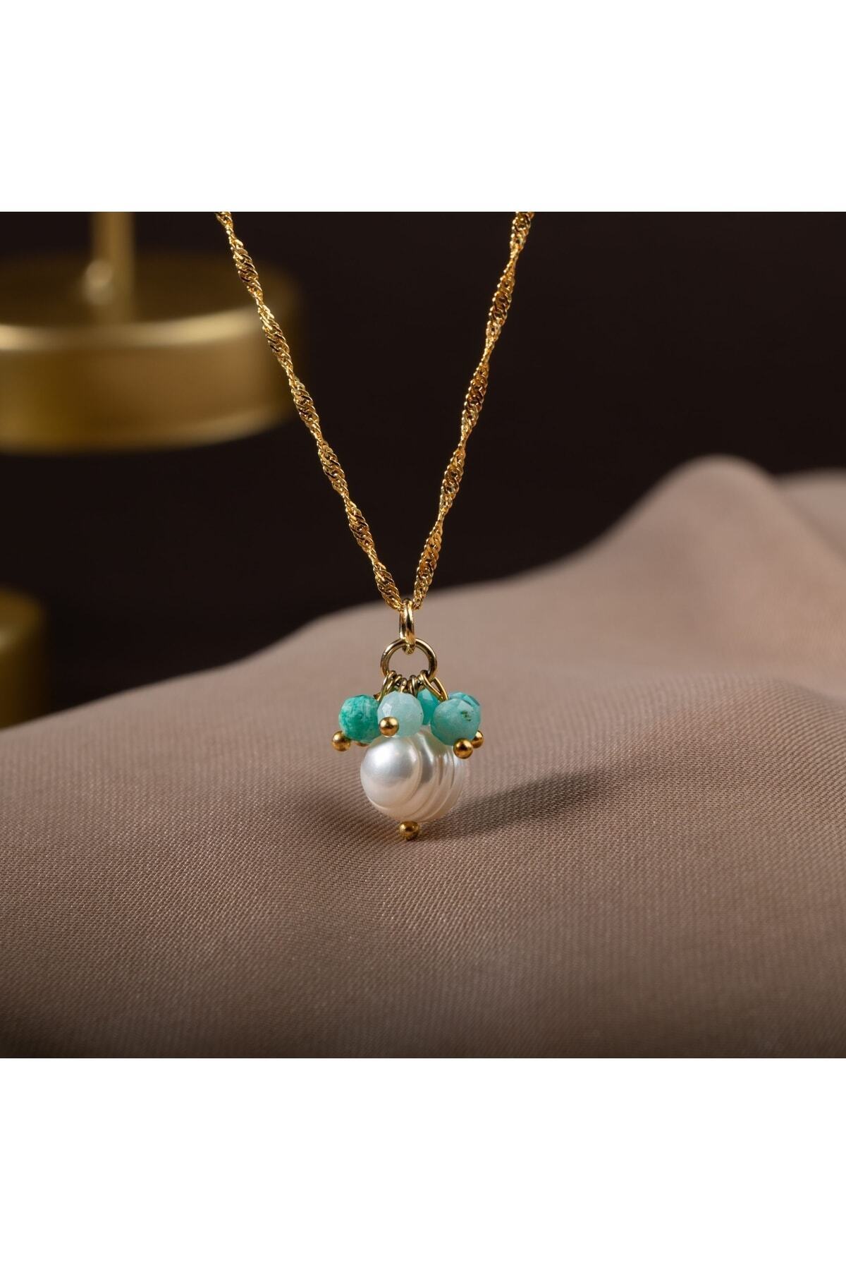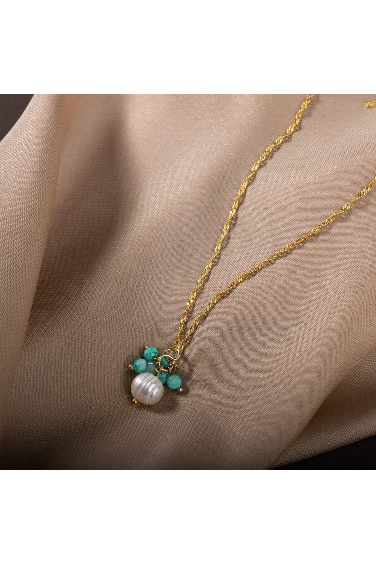 Inci-amazonit Doğal Taş Gümüş Kolye Inci-amazonit Doğal Taş Gümüş Kolye KL-0734 تک سایز