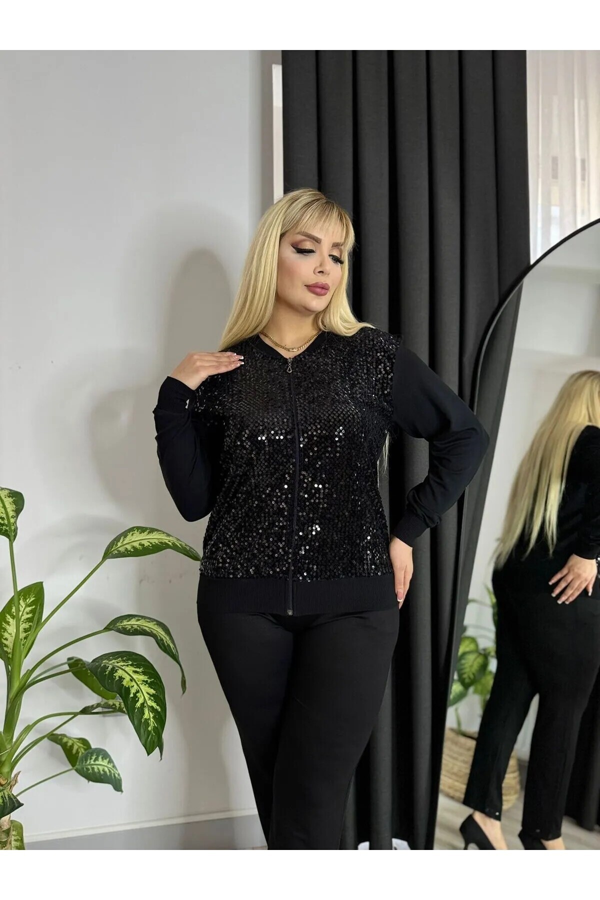 Kadın Büyük Beden Yakası Kopçalı Dikine Çizgili Jakarlı Abiye Hırka Kadın Büyük Beden Yakası Kopçalı Dikine Çizgili Jakarlı Abiye Hırka VXL-1015 42