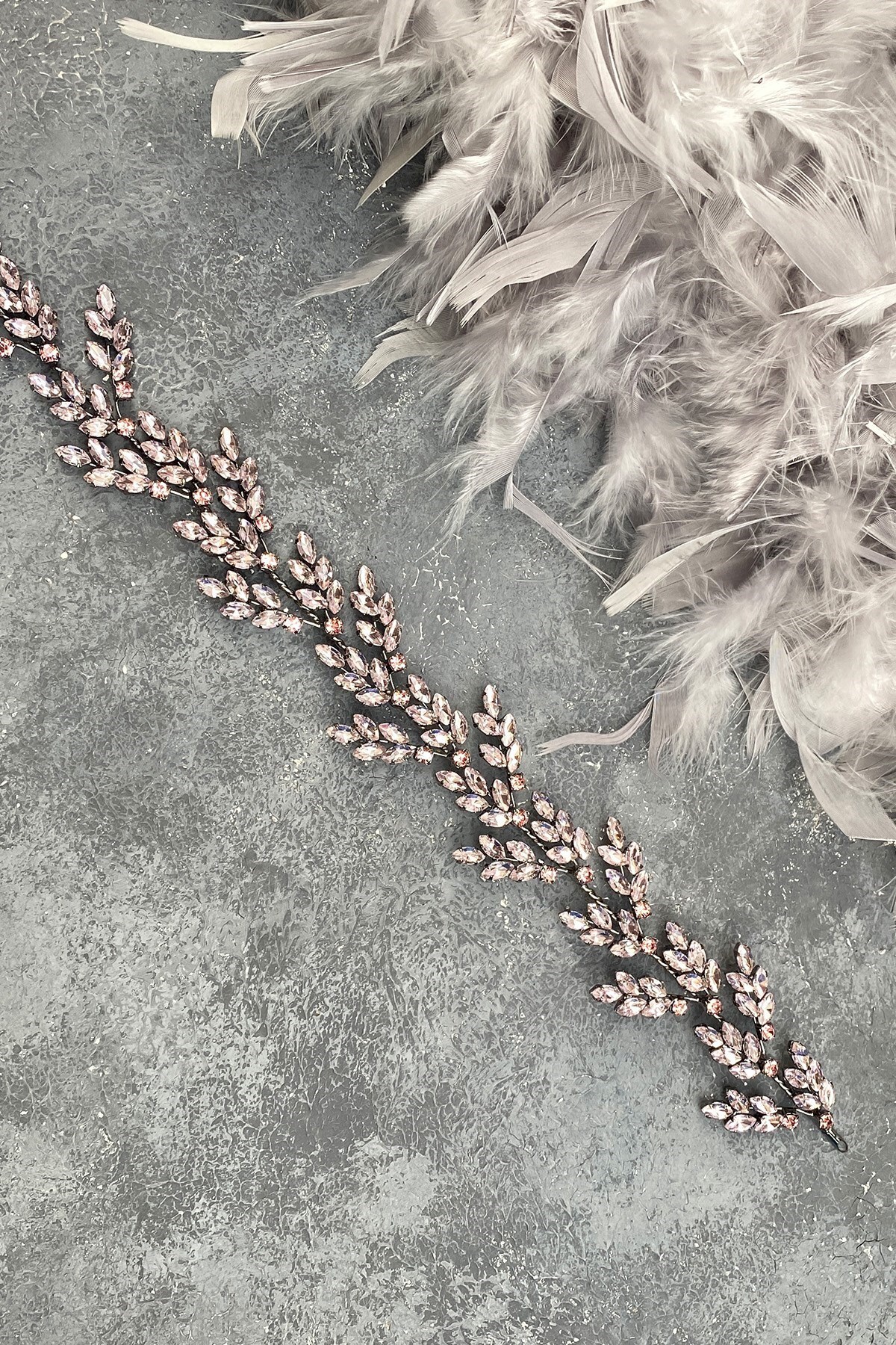 Kahverengi Kapella Model Tüylü Kına Gelin Tacı Ve Türban Aksesuarı – Taç, Kristal Taşlı, Şık Model GELINTACI-564