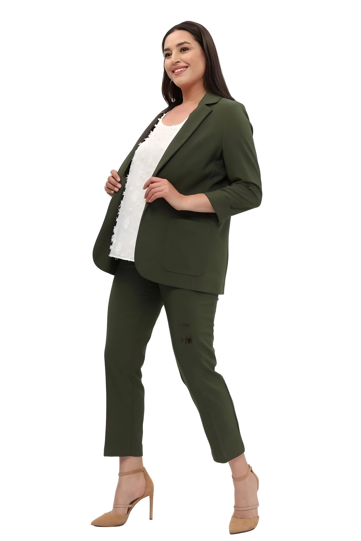 Kadın Blazer Ceket | Haki | Büyük Beden | 7 Renk | Takım Elbise Uyumlu Kadın Blazer Ceket | Haki | Büyük Beden | 7 Renk | Takım Elbise Uyumlu P5095 52-54