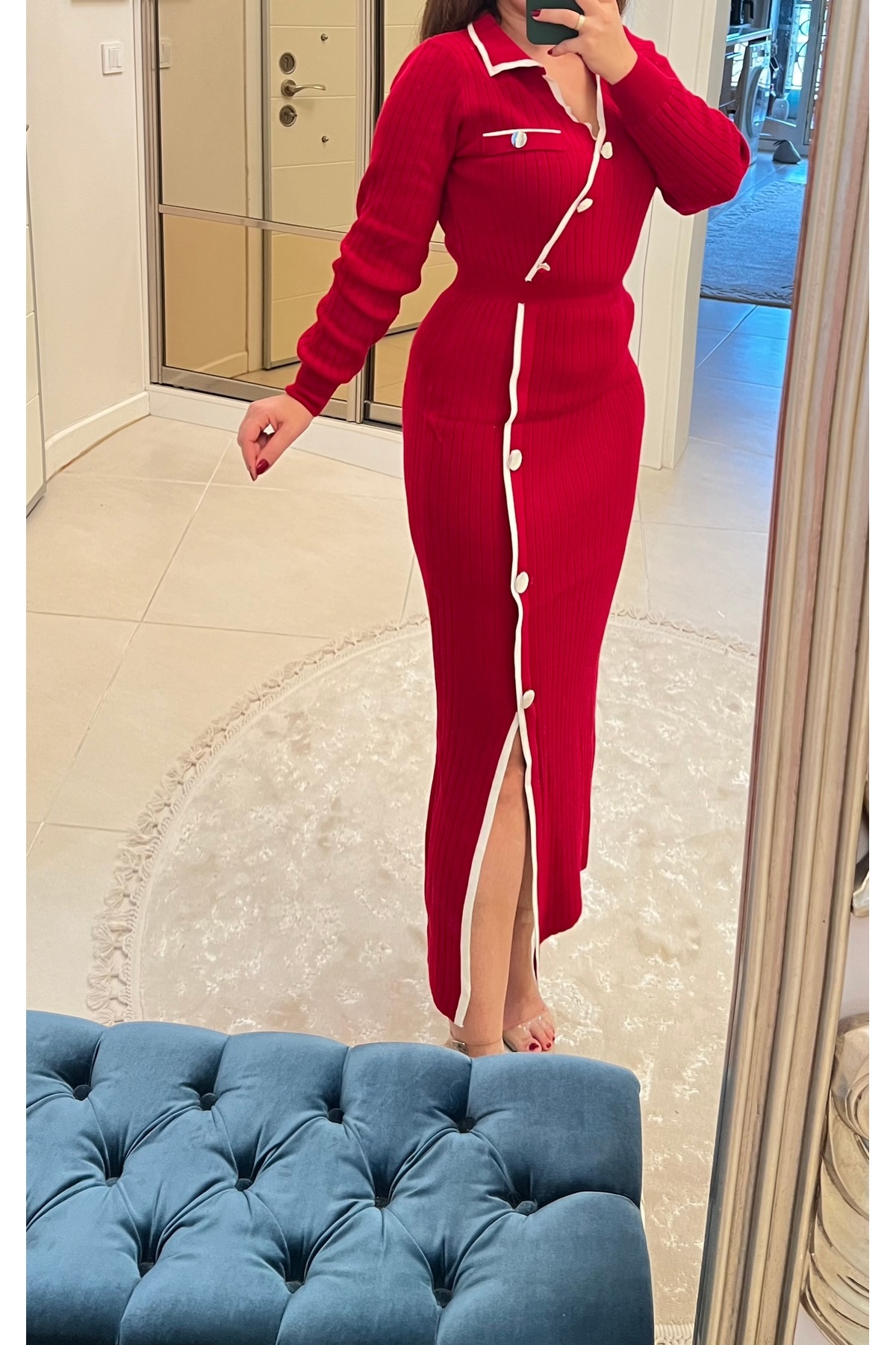 Kırmızı Askılı Yırtmaçlı Elbise Kırmızı Askılı Yırtmaçlı Elbise DB170889ED L