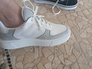 Gri Beyaz Düz Hafif Dikişli Taban Bağcıklı Günlük Ortapedik Iç Taban Kadın Sneaker Gri Beyaz Düz Hafif Dikişli Taban Bağcıklı Günlük Ortapedik Iç Taban Kadın Sneaker 0252 40