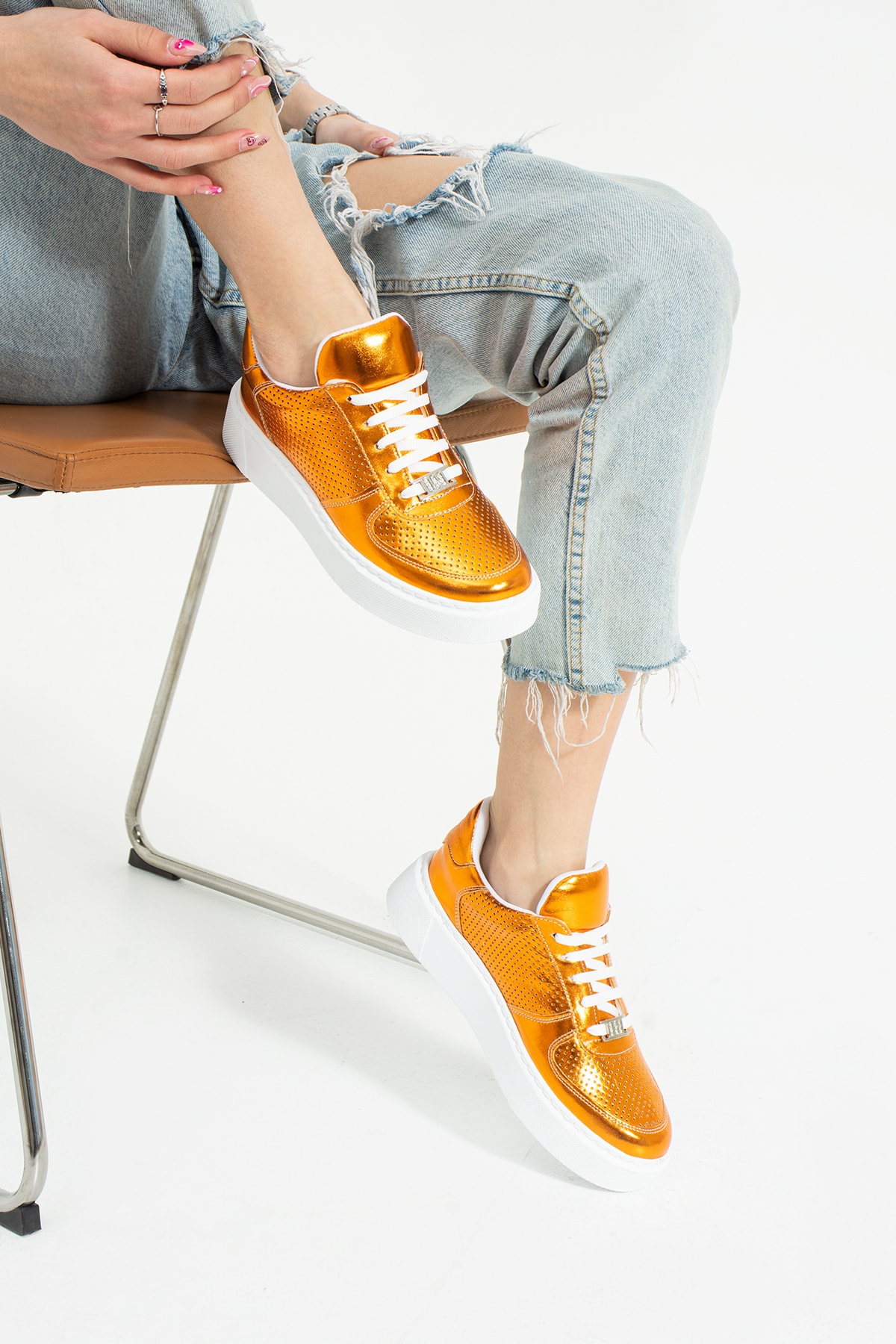 Turuncu Bej Düz Hafif Dikişli Taban Bağcıklı Günlük Ortapedik Iç Taban Kadın Sneaker Turuncu Bej Düz Hafif Dikişli Taban Bağcıklı Günlük Ortapedik Iç Taban Kadın Sneaker 0252 40