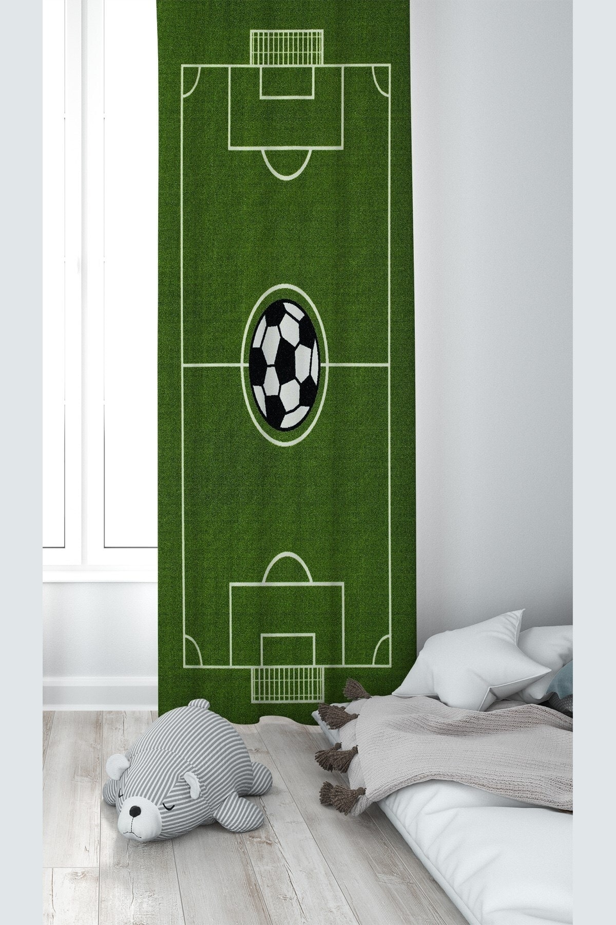 Baskılı Futbol Topu Desenli Tek Kanat Kadife Doku Fon Perde - Yeşil Baskılı Futbol Topu Desenli Tek Kanat Kadife Doku Fon Perde - Yeşil 92563 70 x 260