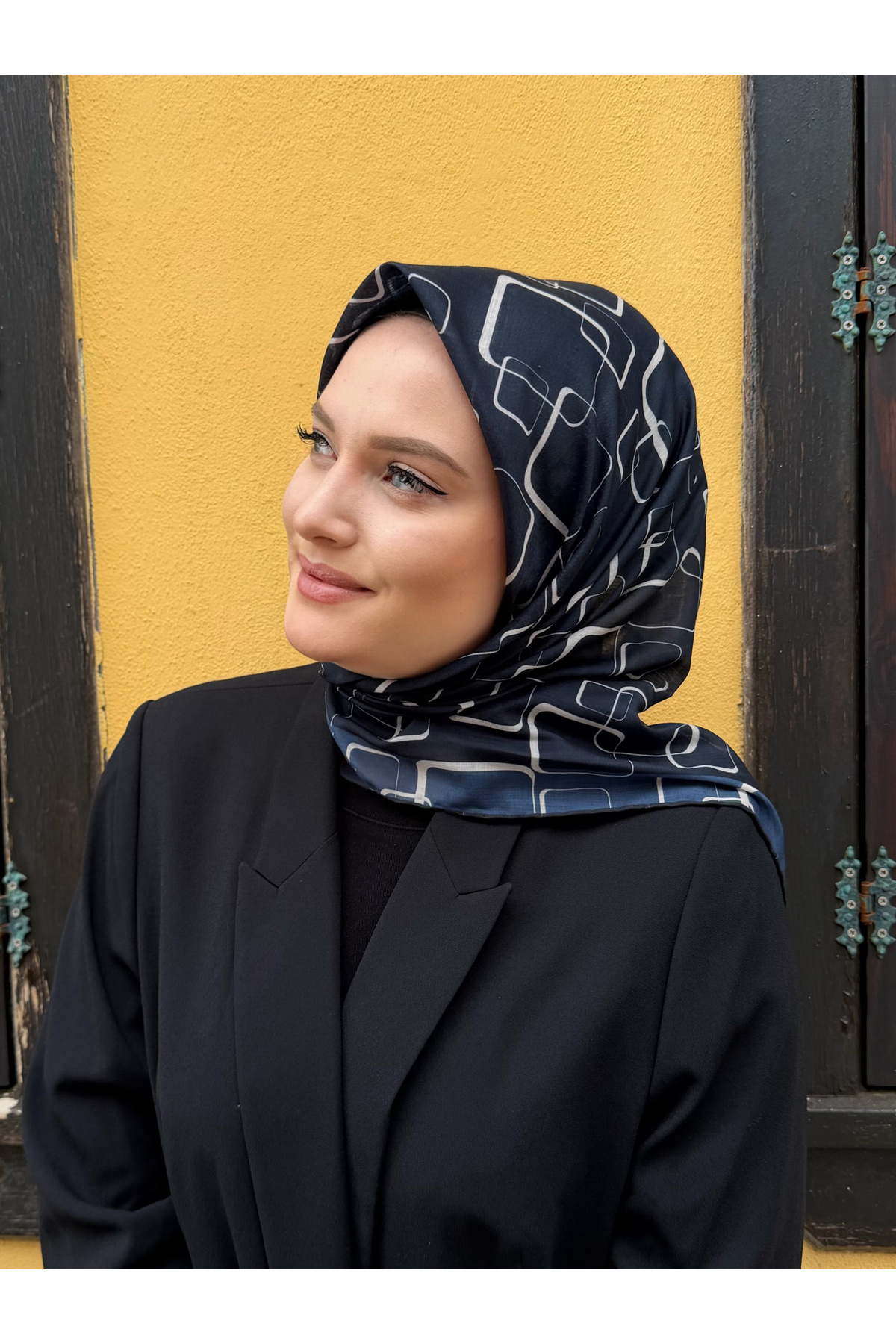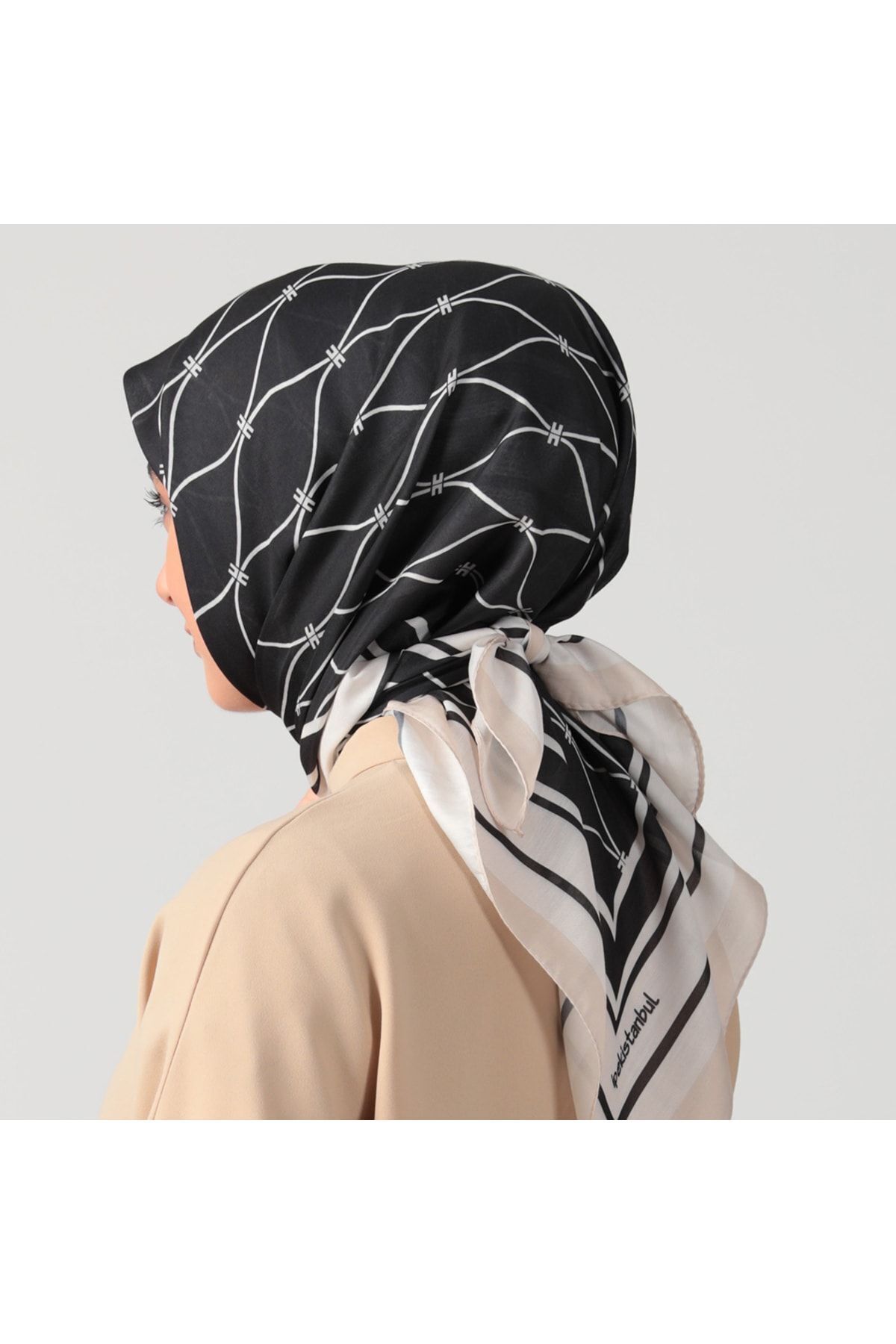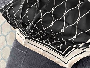 Pamuk Ipek Eşarp - Dalga Desen - Siyah Pamuk Ipek Eşarp - Dalga Desen - Siyah T602 90x90