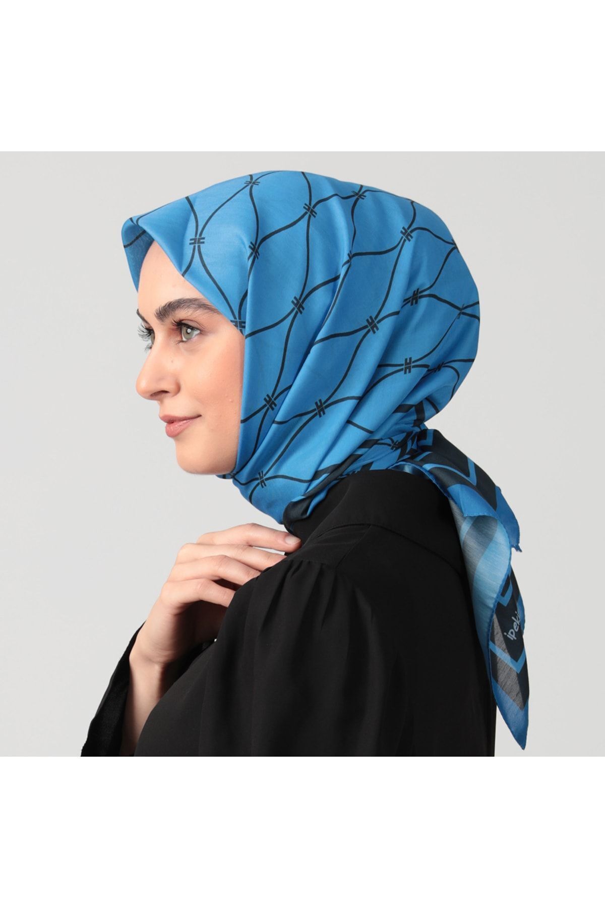 Pamuk Ipek Eşarp - Dalga Desen - Indigo Pamuk Ipek Eşarp - Dalga Desen - Indigo T602 90x90