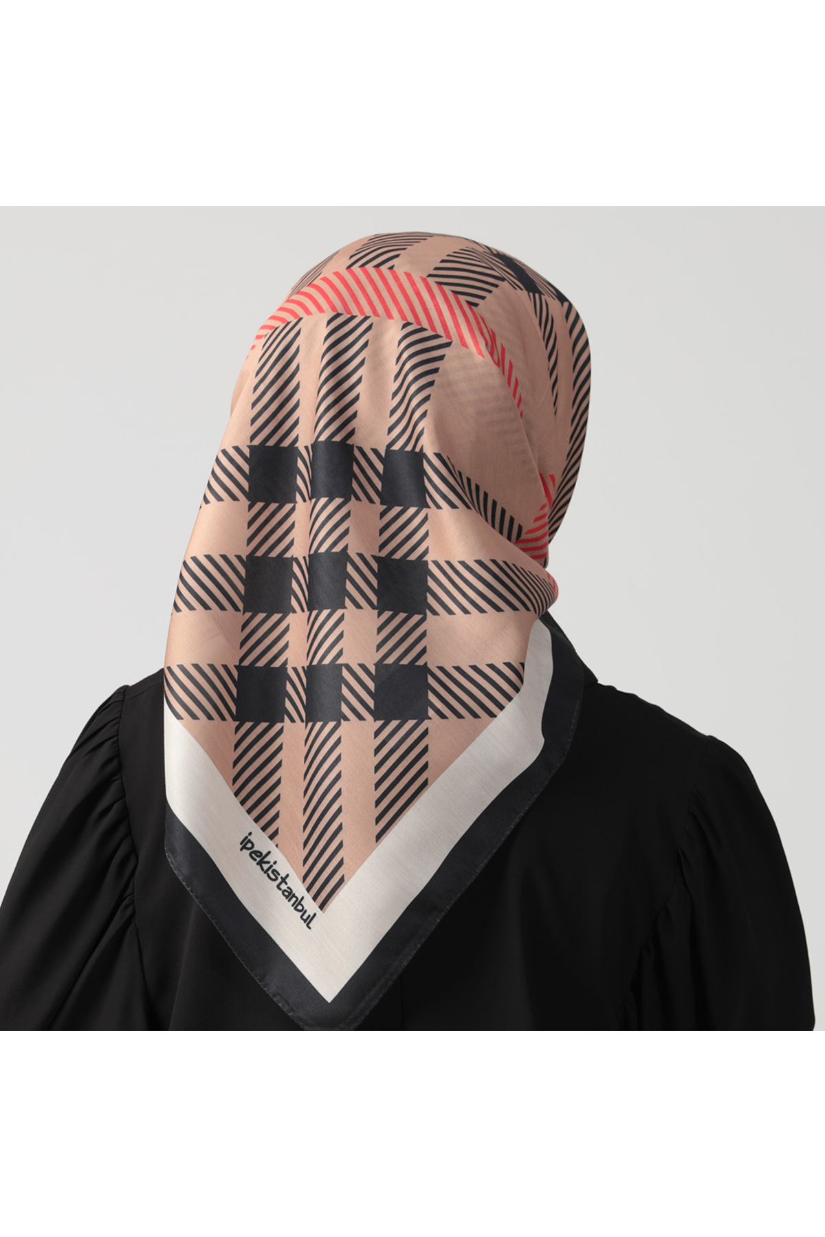 Pamuk İpek Eşarp - Ekose Desen - Camel Pamuk İpek Eşarp - Ekose Desen - Camel T602 90x90