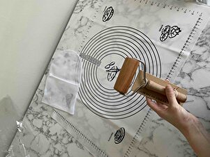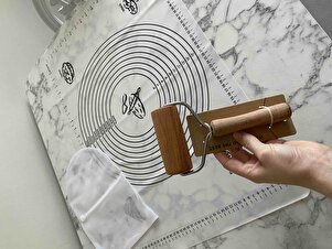 2'li Set Beyaz 45x65 Cm Silikon Hamur Açma Matı Ve Pratik Ahşap Saplı Silindir Hamur Açıcı 2'li Set Beyaz 45x65 Cm Silikon Hamur Açma Matı Ve Pratik Ahşap Saplı Silindir Hamur Açıcı Beyaz Hamur Açma Matı ve Hamur Açıcı تک سایز