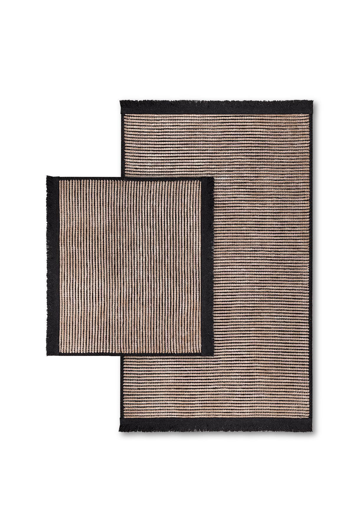 Lines Doğal Pamuklu Banyo Kilim Seti 60x100 50x60 Cm - Antrasit Lines Doğal Pamuklu Banyo Kilim Seti 60x100 50x60 Cm - Antrasit Lines01 تک سایز