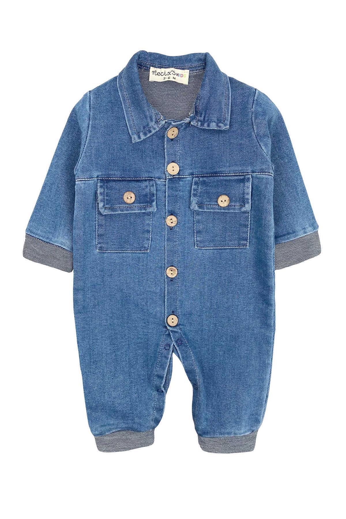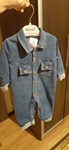 Düğme Detaylı Bebek Kot Tulum Mavi Düğme Detaylı Bebek Kot Tulum Mavi HT0264Y 18-24 AY