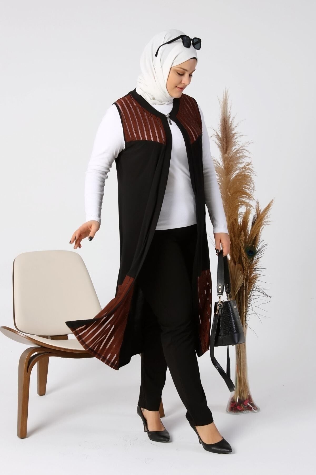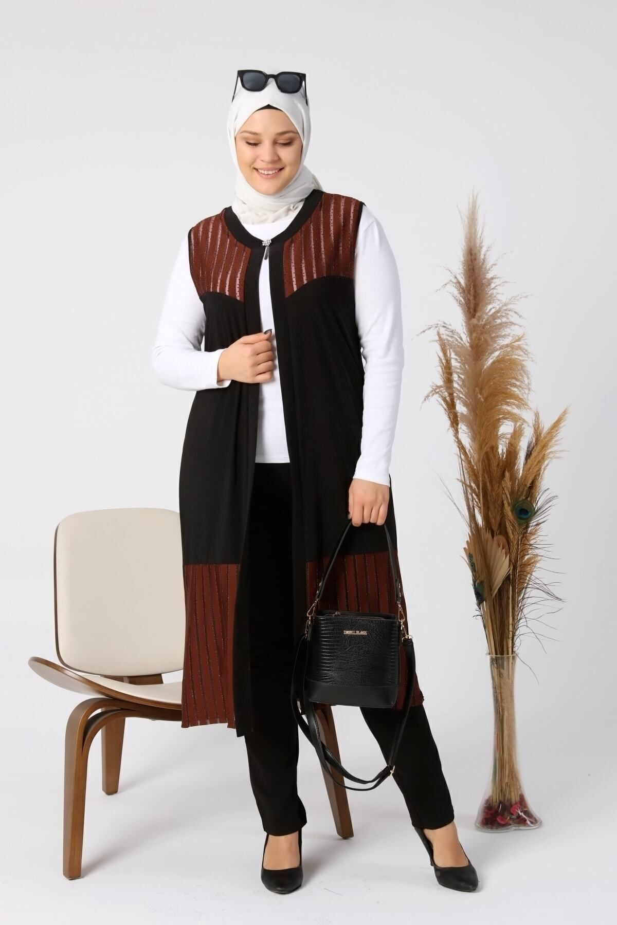 Kadin Buyuk Beden Yelek Anne Uzun Ve Tasli Kahverengi Kadin Buyuk Beden Yelek Anne Uzun Ve Tasli Kahverengi 7023sevimG1 6XL