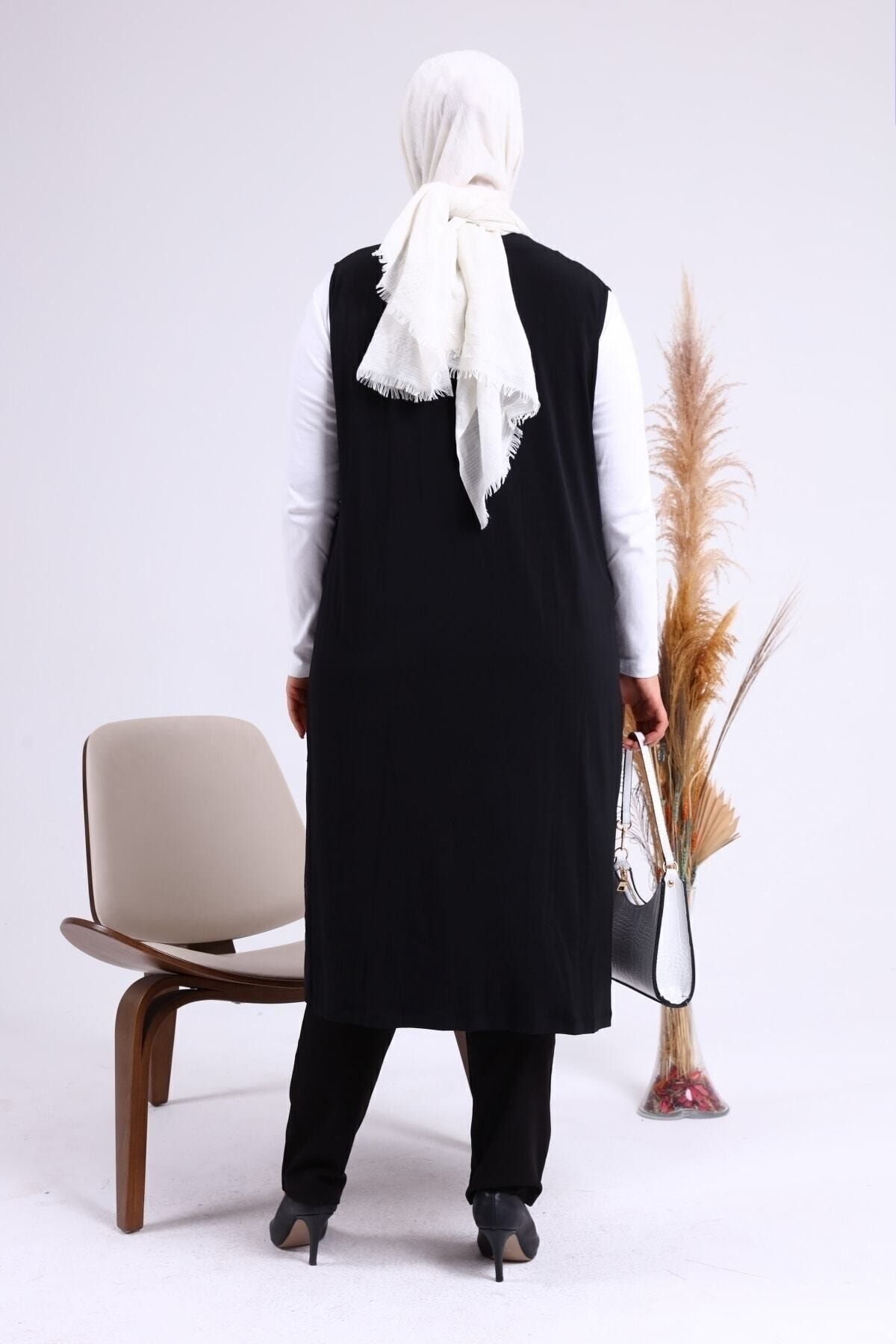 Kadin Plus Buyuk Beden Anne Tesettur Elbise Taşlı Uzun Yelek Kadin Plus Buyuk Beden Anne Tesettur Elbise Taşlı Uzun Yelek 7023sevimG2 6XL