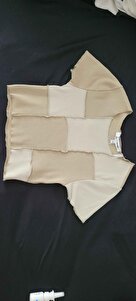 Crop Tişört Renk Bloklu Bisiklet Yaka Kısa Kollu Crop Tişört Renk Bloklu Bisiklet Yaka Kısa Kollu 3SAL10011IK XL