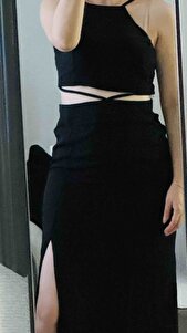 Midi Elbise Pencere Detaylı Yırtmaçlı Halter Yaka Midi Elbise Pencere Detaylı Yırtmaçlı Halter Yaka 3SAL80054IW 46