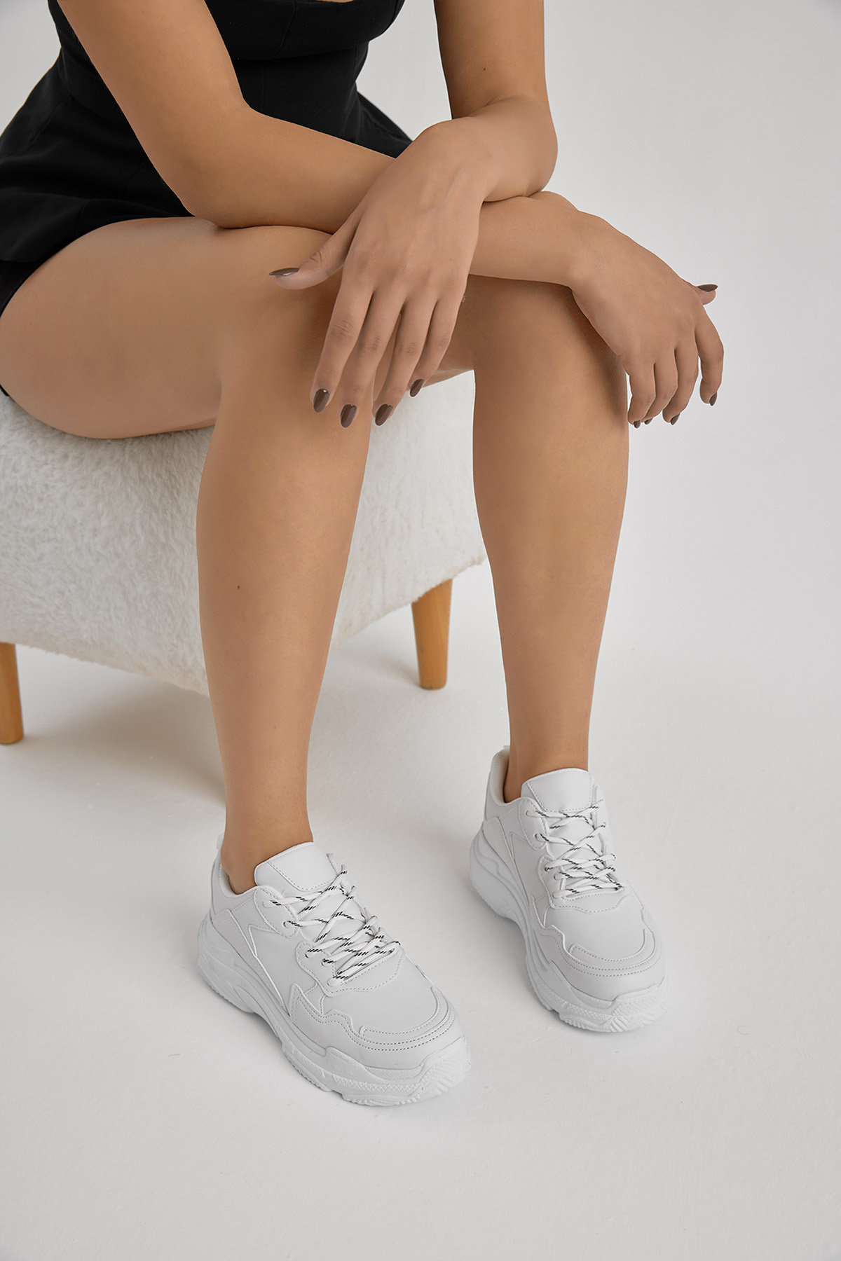 Kadın Beyaz Cilt Yüksek Taban Bağcıklı Spor Ayakkabı Kadın Beyaz Cilt Yüksek Taban Bağcıklı Spor Ayakkabı BLS-Q-1 40