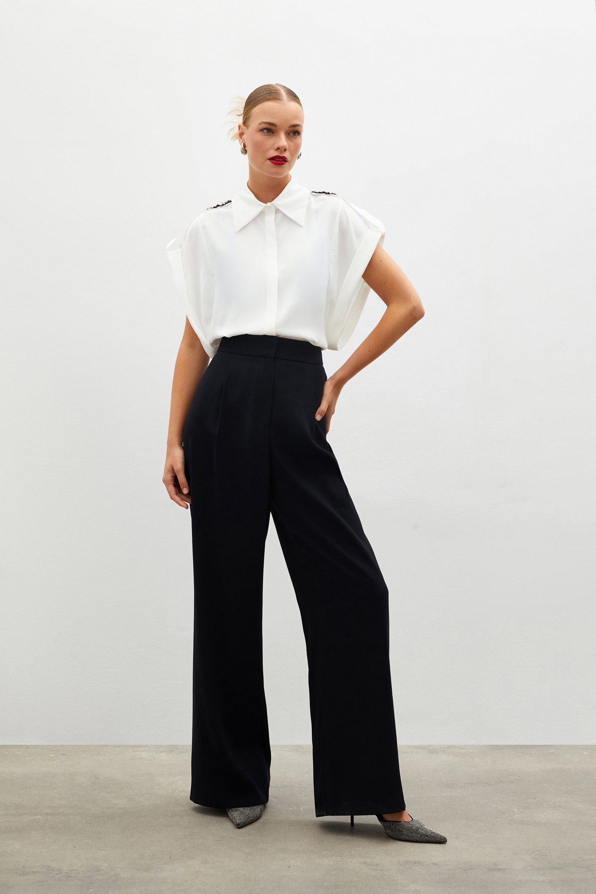 Pile Detaylı Salaş Pantolon - Siyah Pile Detaylı Salaş Pantolon - Siyah STN139KPA3054 42