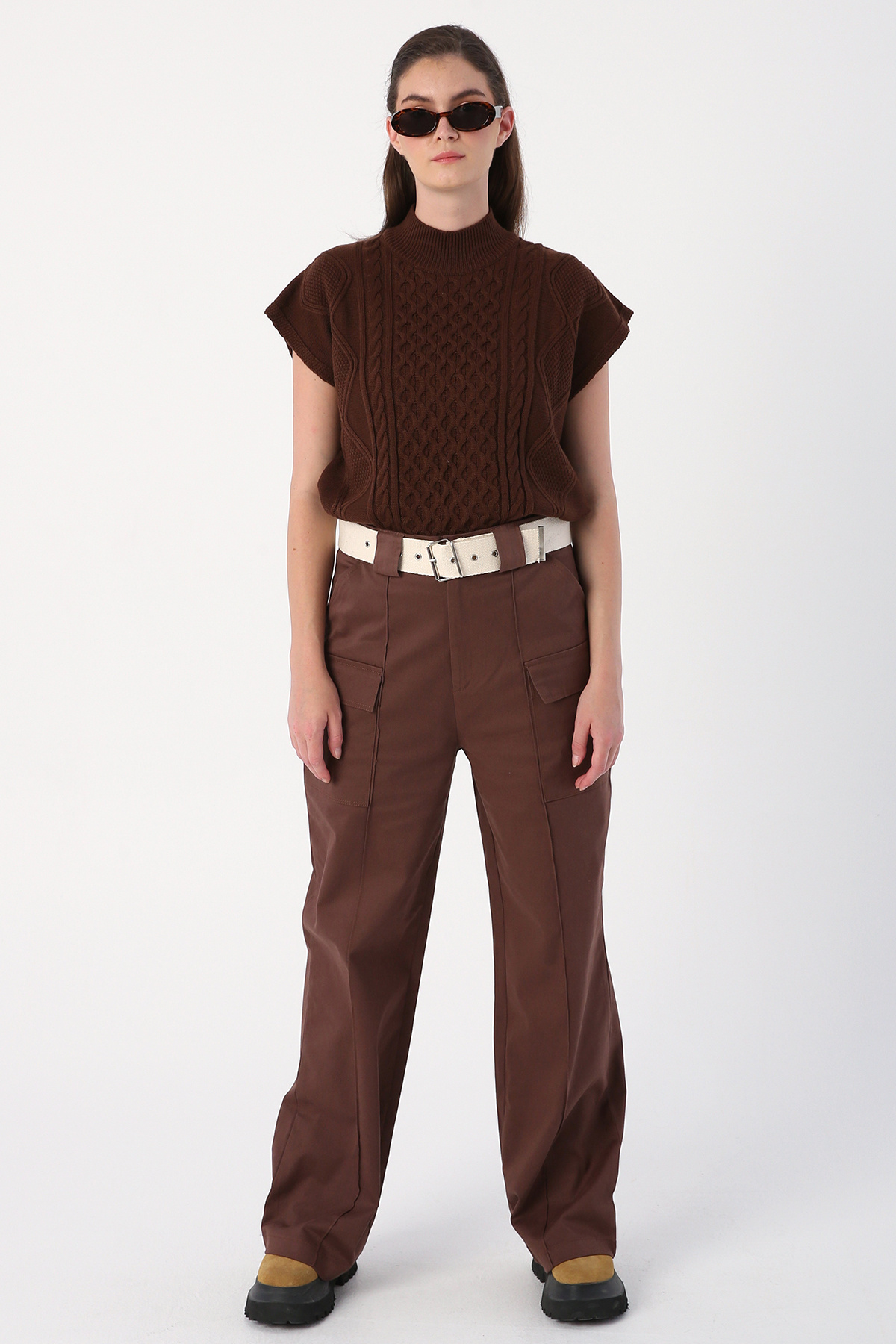 Kahve Palaska Kemerli Cepli Bol Paça Pantolon Kahve Palaska Kemerli Cepli Bol Paça Pantolon 23DB77013AL0 42