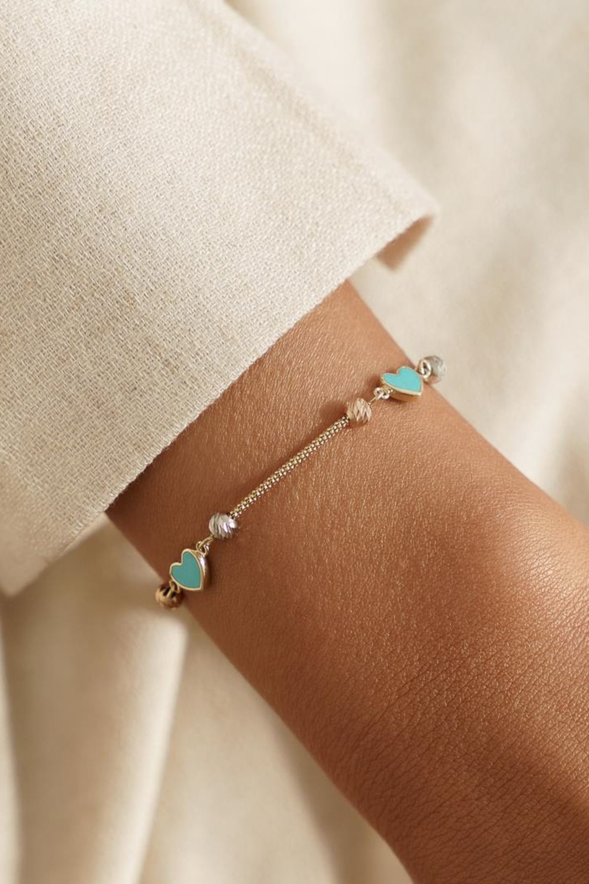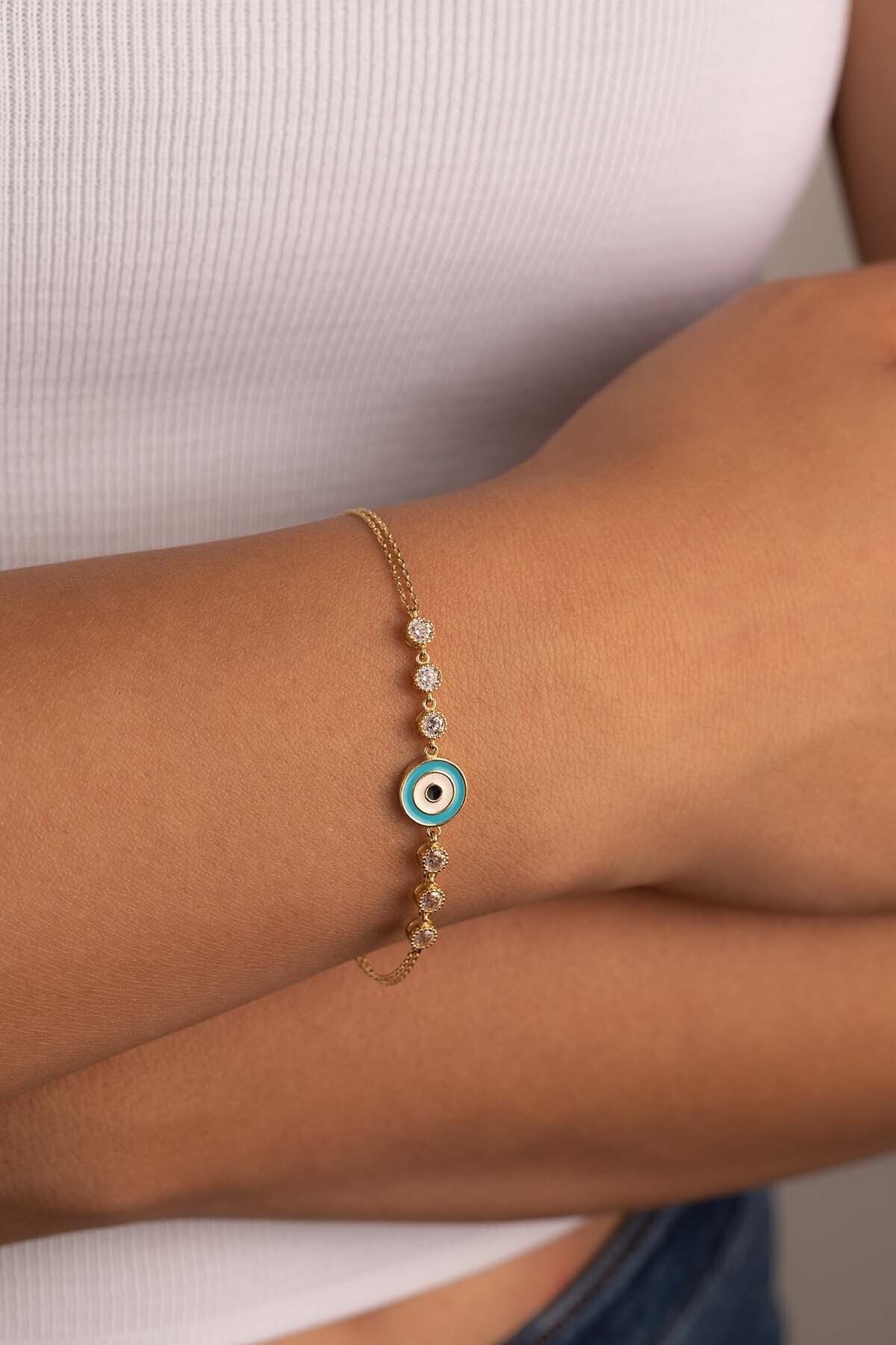 Nazar Boncuklu Figürlü Altın Şans Bilekliği Nazar Boncuklu Figürlü Altın Şans Bilekliği BLK4643639 19 cm