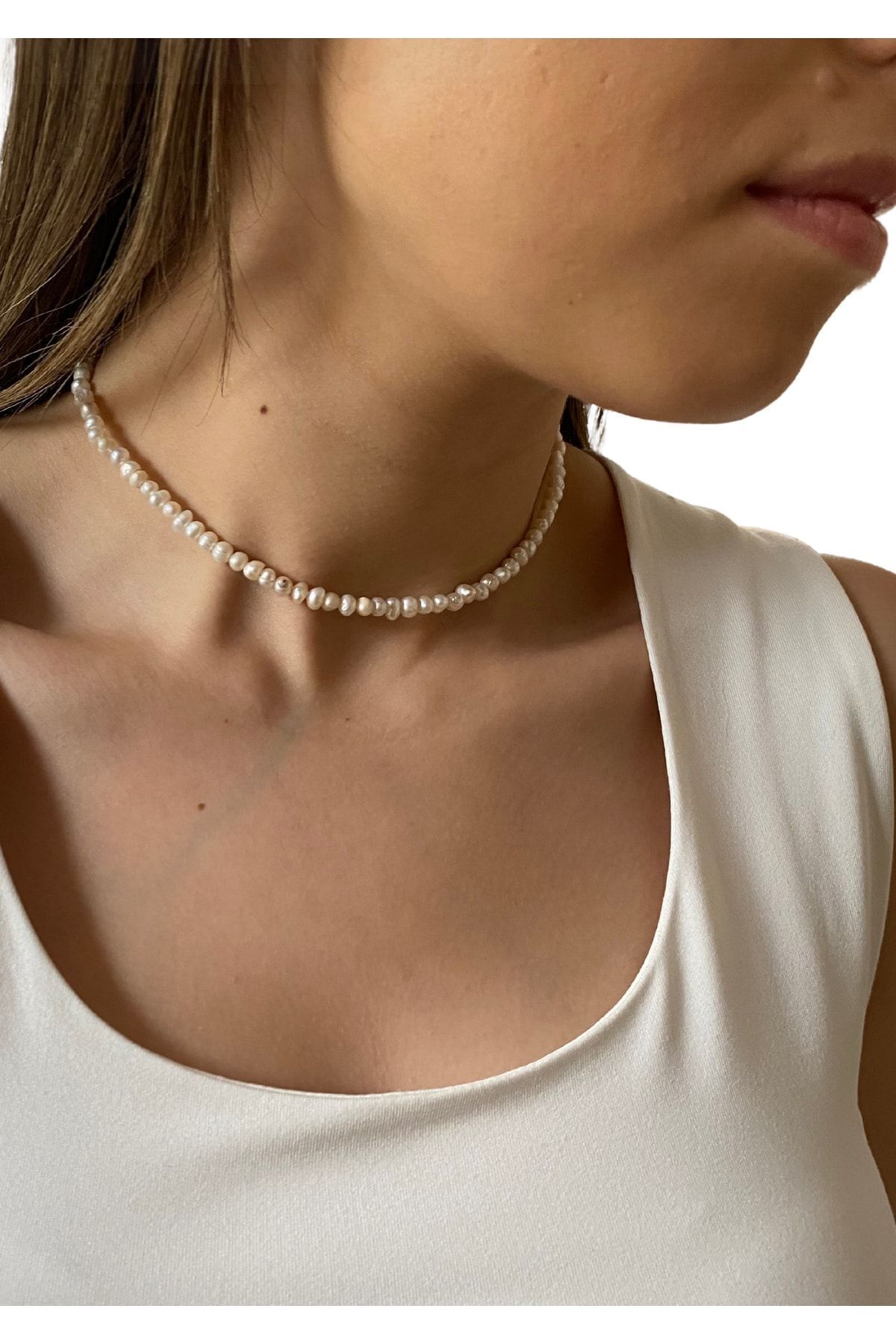 Kadın Küçük Inci Kolye, Gold Çelik Gerçek Inci, Gerçek Istiridye Inci, 4 Mm Yuvarlak Inci Choker Kadın Küçük Inci Kolye, Gold Çelik Gerçek Inci, Gerçek Istiridye Inci, 4 Mm Yuvarlak Inci Choker INCK000509 تک سایز
