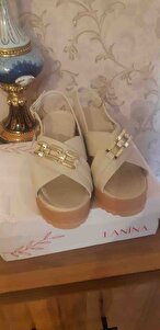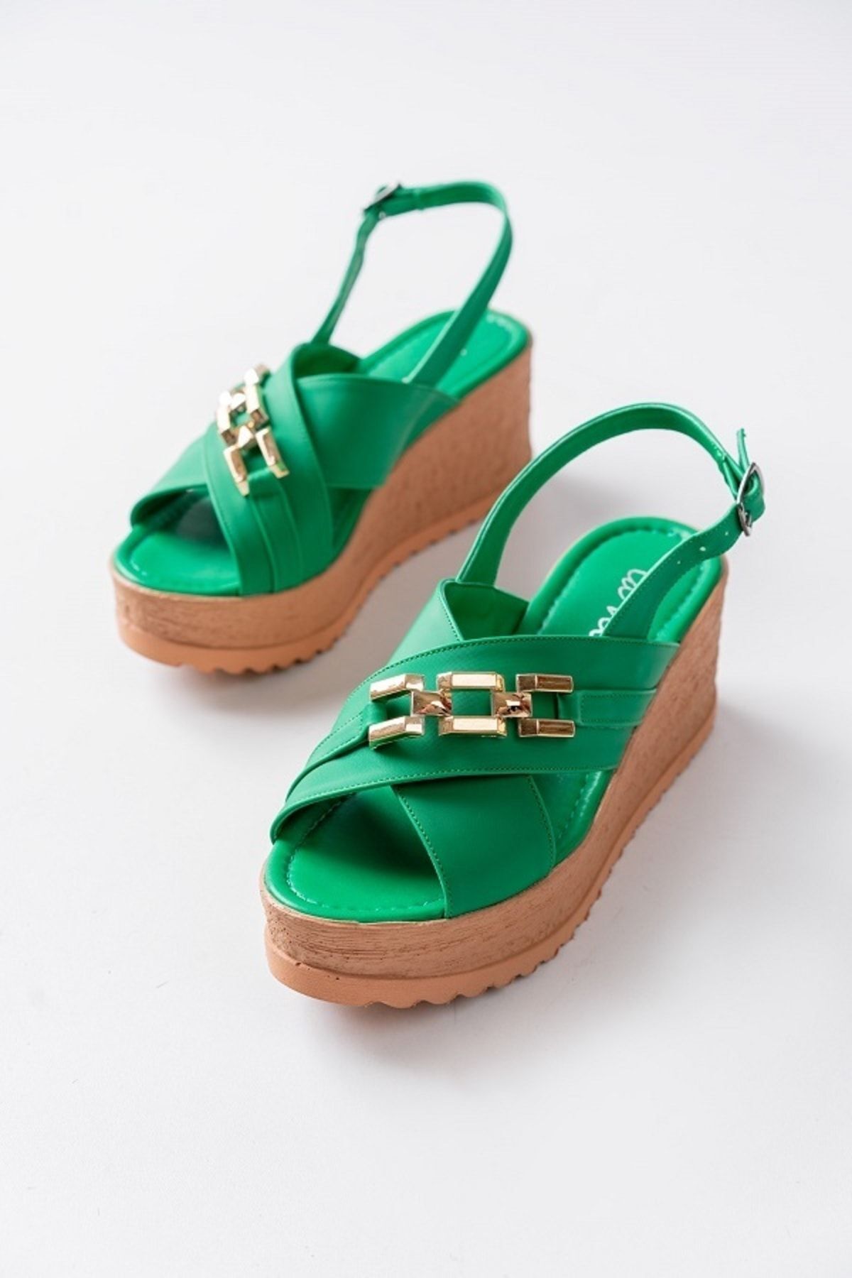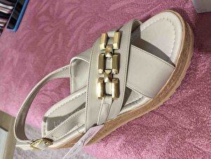 Kadın Zincir Detaylı Çapraz Dolgu Topuk Sandalet Kadın Zincir Detaylı Çapraz Dolgu Topuk Sandalet VCZ-403 40