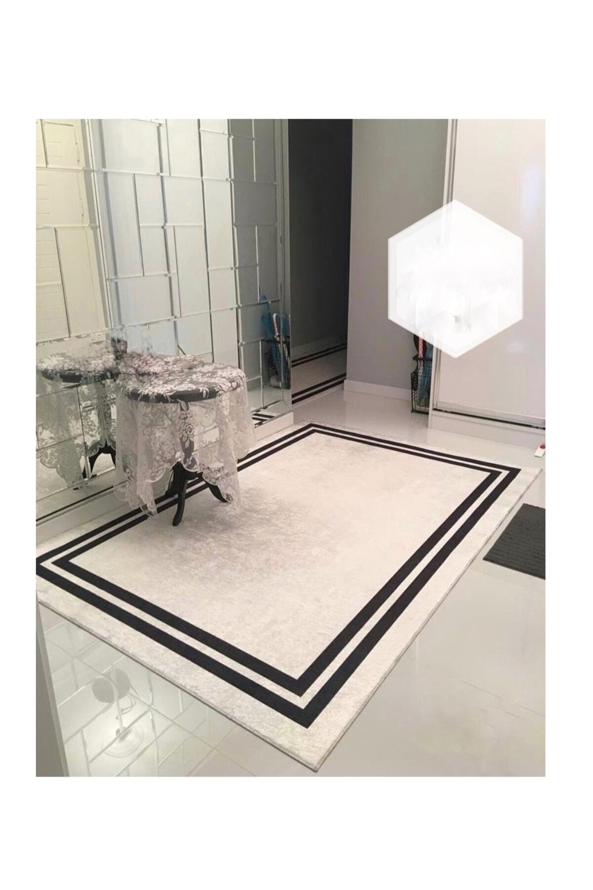 Şönil Halı Dijital Baskılı Çerçeve Desenli Krem Salon Halısı Yıkanabilir Mutfak Halısı Kaymaz Şönil Halı Dijital Baskılı Çerçeve Desenli Krem Salon Halısı Yıkanabilir Mutfak Halısı Kaymaz 4568 160 x 230