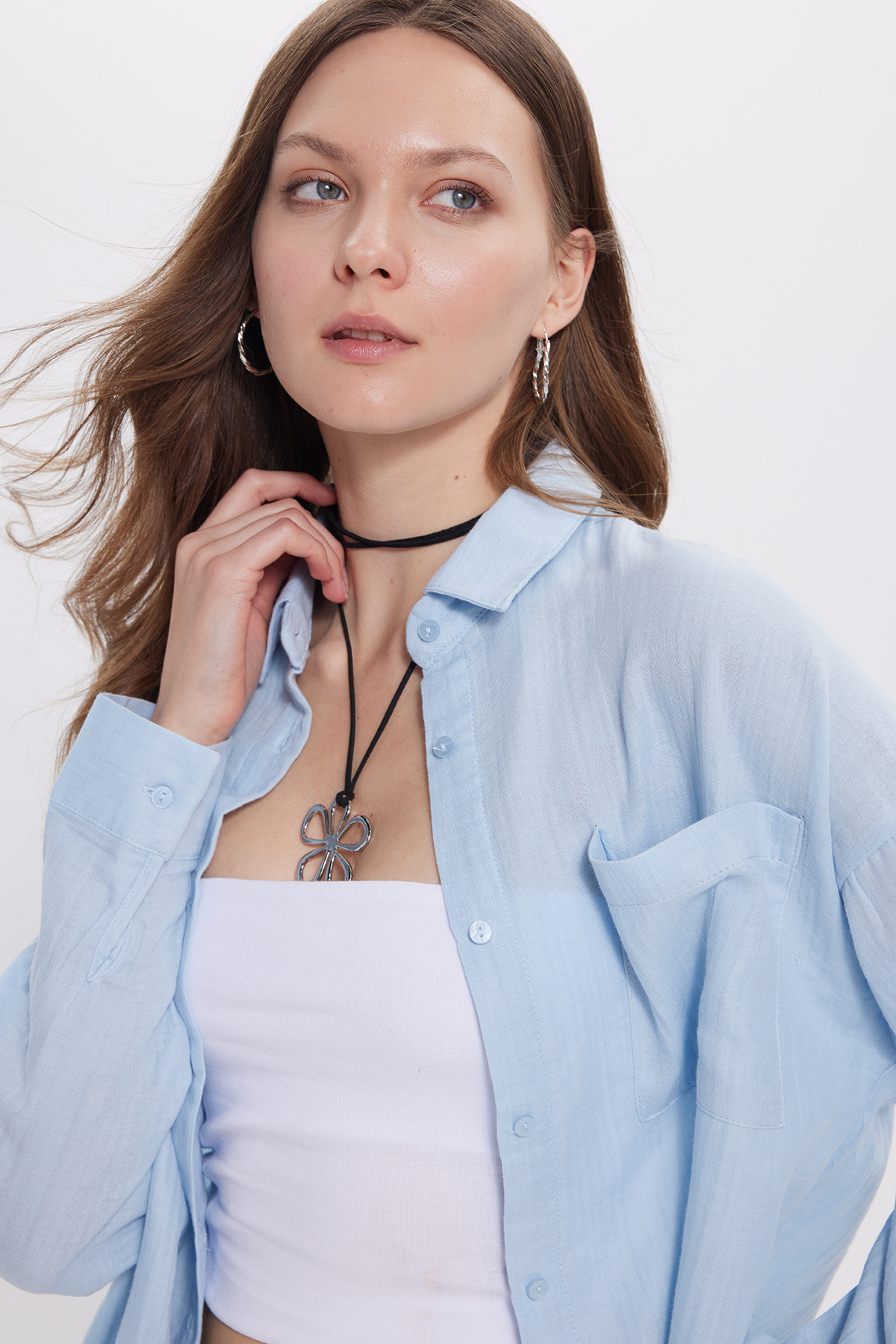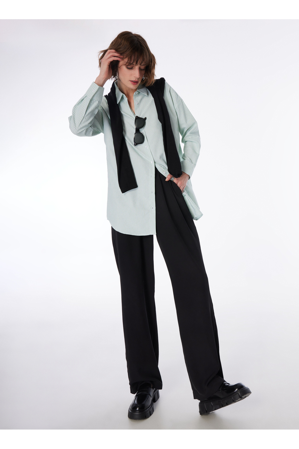 Yeşil - Beyaz Kadın Geniş Fit Gömlek RONKA-1 Yeşil - Beyaz Kadın Geniş Fit Gömlek RONKA-1 Ronka-1 42