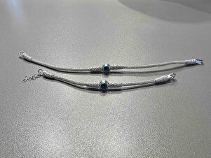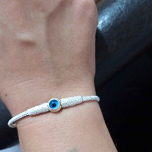 Nazar Boncuklu Gümüş Kazaziye Bileklik Nazar Boncuklu Gümüş Kazaziye Bileklik BIL014 14 cm