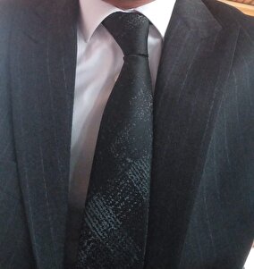 Siyah Füme Gölge Desen Mendilli Kravat Siyah Füme Gölge Desen Mendilli Kravat P0076 تک سایز