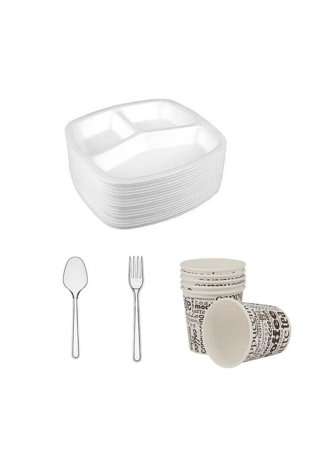 3 Gözlü Köpük Tabak Plastik Çatal Plastik Kaşık Karton Bardak Set 100 Lü 3 Gözlü Köpük Tabak Plastik Çatal Plastik Kaşık Karton Bardak Set 100 Lü Miosetpiknik تک سایز